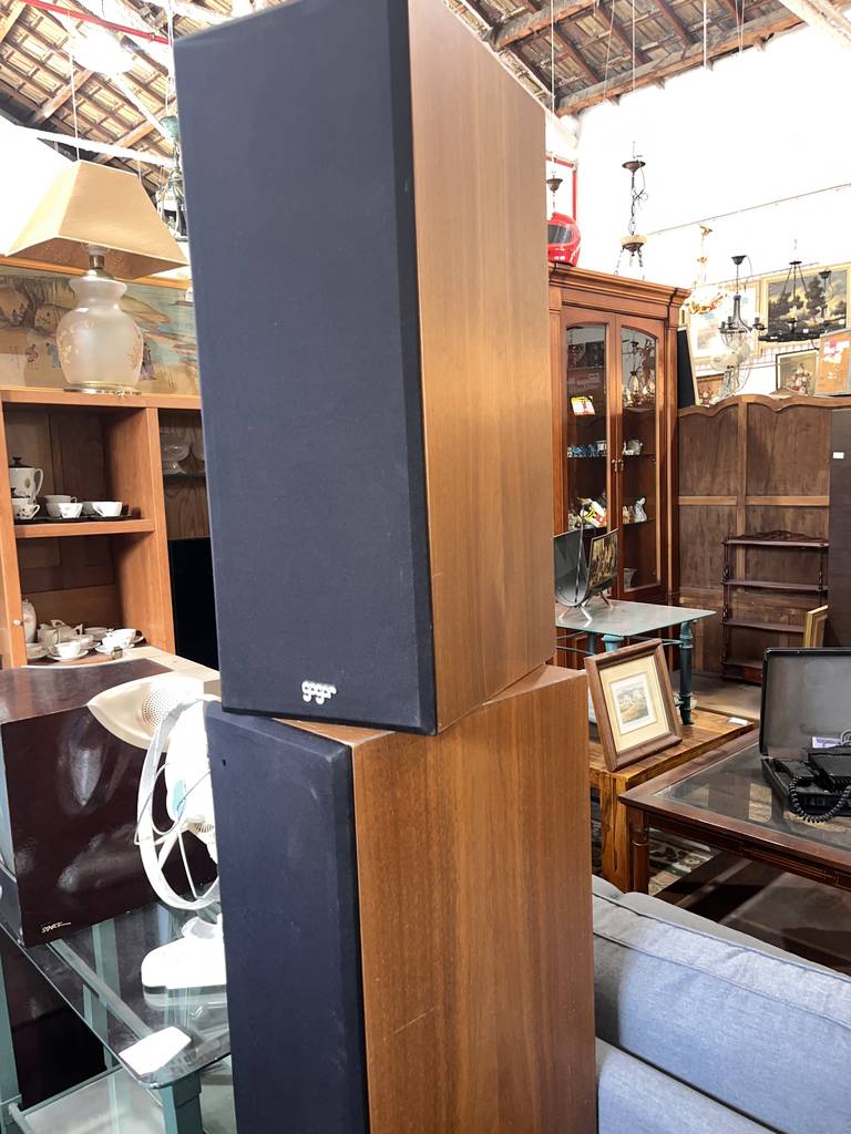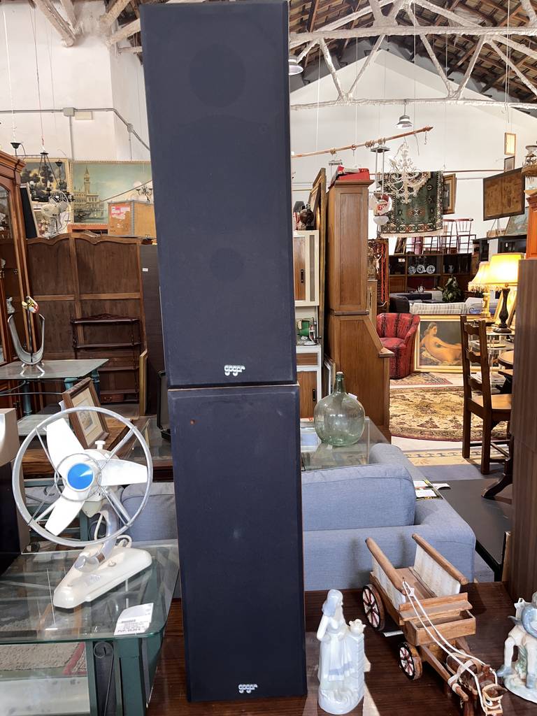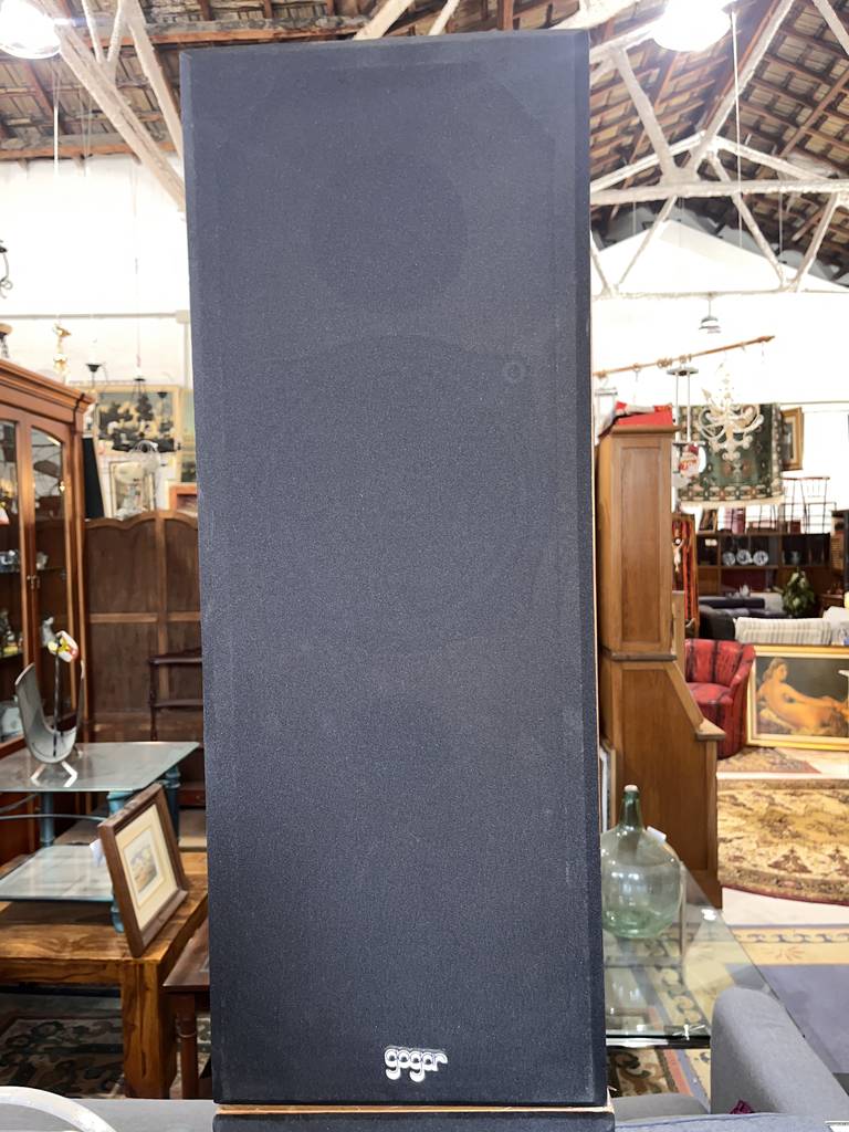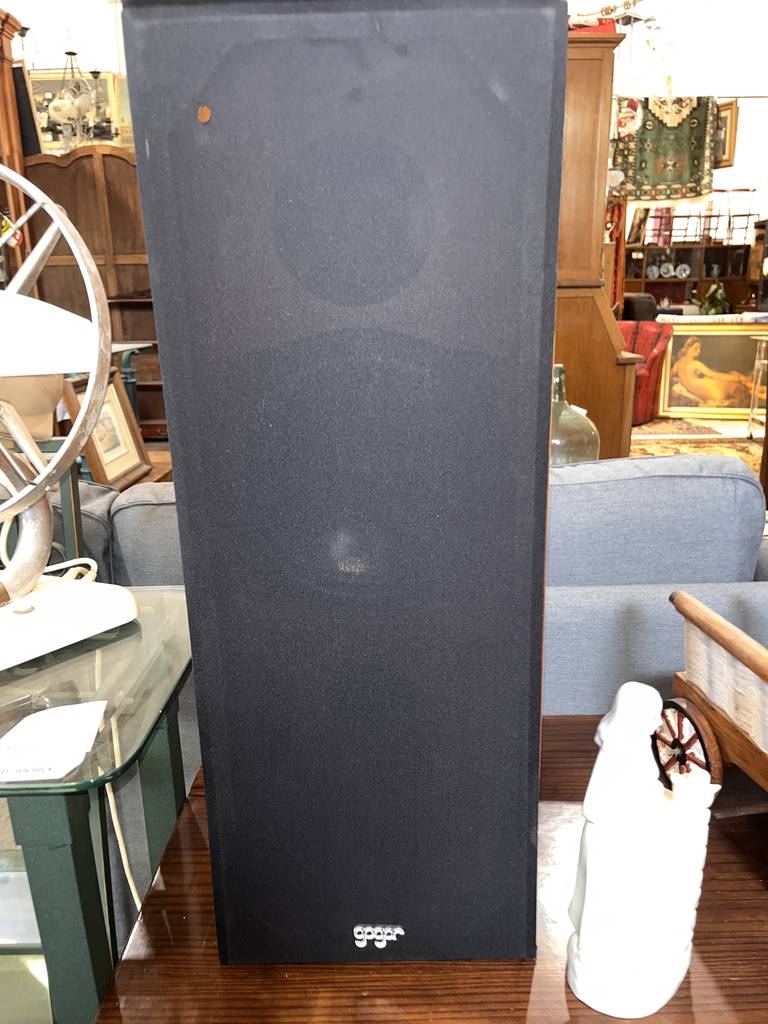 Pareja formada por dos altavoces de la marca Gogar de color negro. Se trata de dos altavoces que tienen una forma rectangular y una estatura mediana. Son dos altavoces ideales para conectarlos a una mini cadena o a un ordenador para escuchar música a todo volumen. Como se puede observar en las fotografías se encuentran en buenas condiciones para ser utilizados.