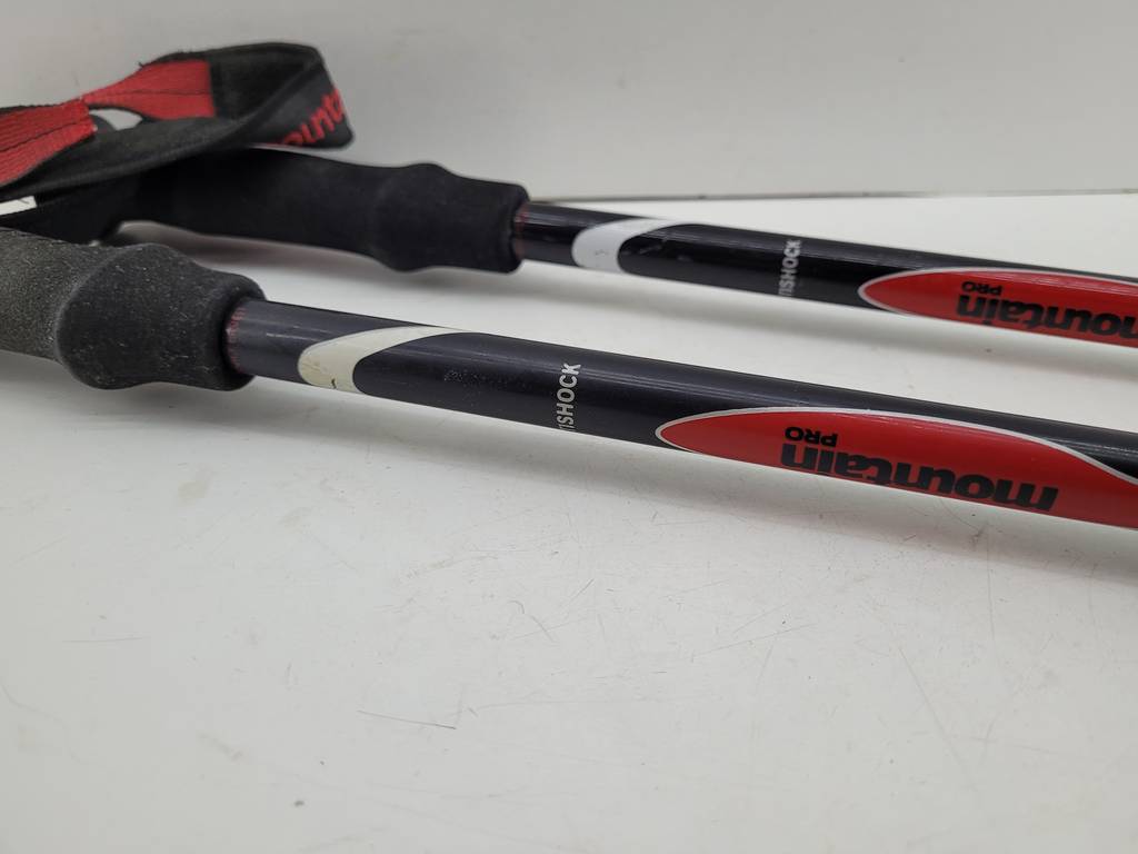 Pareja de bastones para Trekking de la marca Mountain pro. Se trata de dos bastones de muy buena calidad con mangos antideslizantes cómodos y cintas de agarre. También se pueden regular en altura. Son ideales para salidas a la montaña tanto para salidas light como para experiencias de alta montaña. Como podemos observar en las fotografías se encuentran en buenas condiciones.