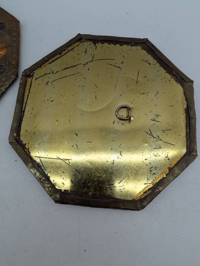 Pareja formada por dos espejos de estilo oriental con un bonito marco dorado con toques naranjas. Se trata de dos espejos que tienen una forma octogonal y disponen de un marco ancho con diferentes motivos decorativos. Son unos espejos ideales para colocarlos tanto en un salón comedor de estilo oriental como en un vestidor. Como se puede observar en las fotografías se encuentran en buenas condiciones.