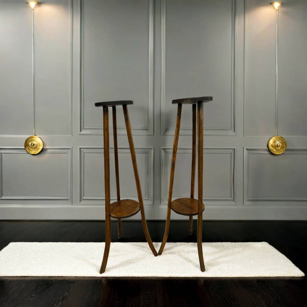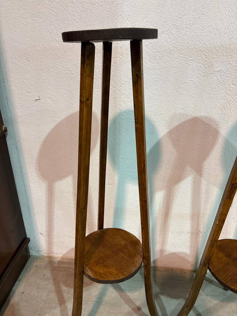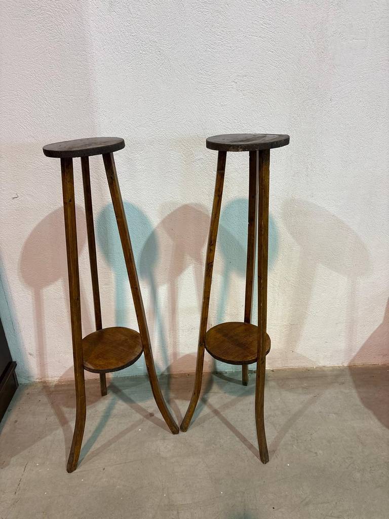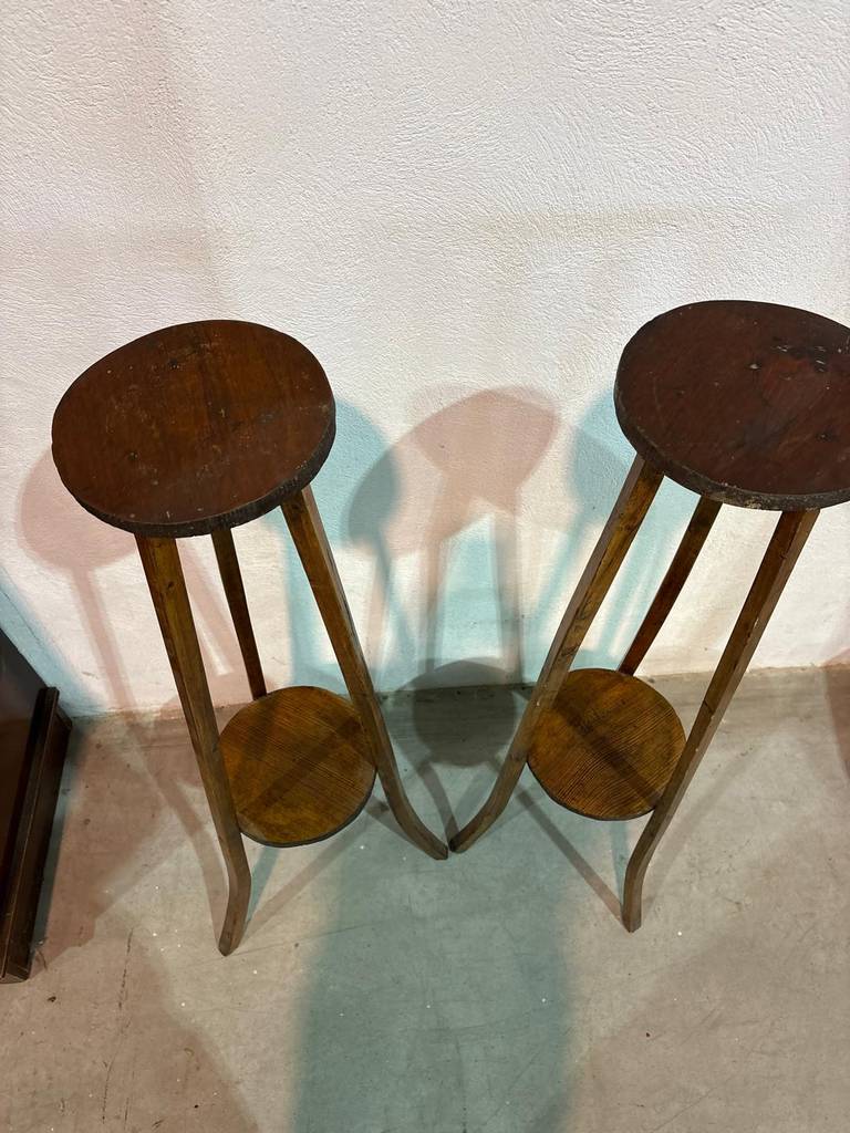 Pareja de peanas antiguas que han sido fabricadas con madera de buena calidad y robusta. Se trata de unas peanas ideales para colocar un bonito jarrón encima teniendo una decoración clásica y elegante en nuestra casa. Quedarían perfectas en un recibidor o un salón comedor. Como podemos observar en las fotografías presentan desgaste.