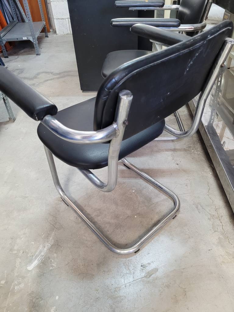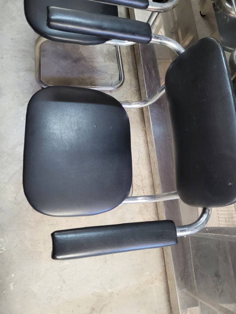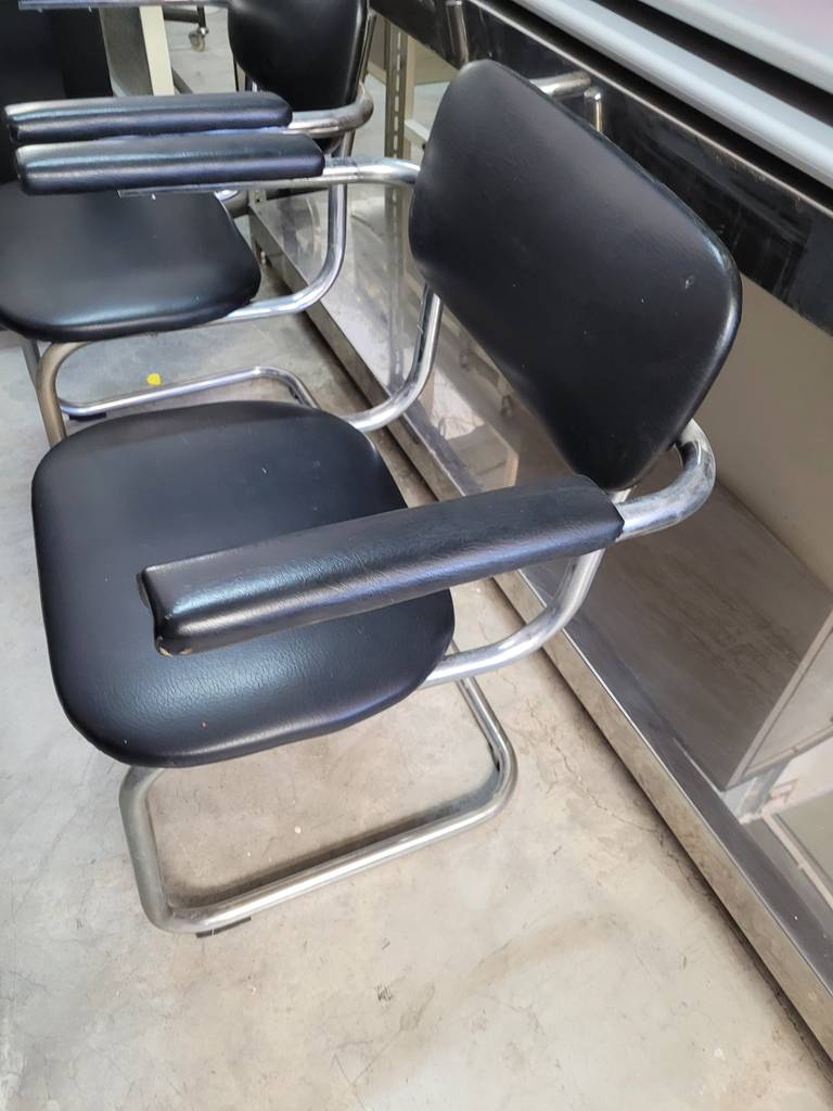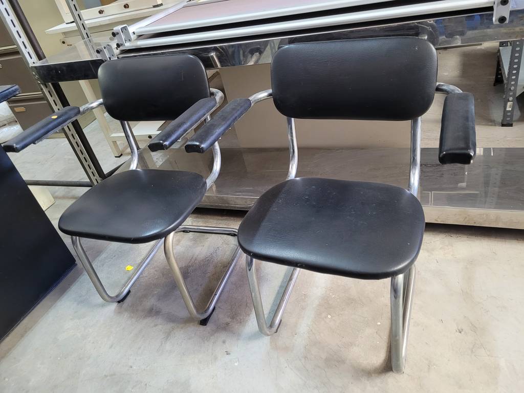 Pareja formada por dos sillas de comedor de estilo industrial de color negro y plateado. Se trata de dos sillas de comedor con un marcado estilo industrial que tienen un cómodo asiento, dos prácticos reposabrazos y unas patas robustas y resistentes. Son unas sillas perfectas para colocarlas en un salón comedor. Como se puede observar en las fotografías se encuentran en buenas condiciones.