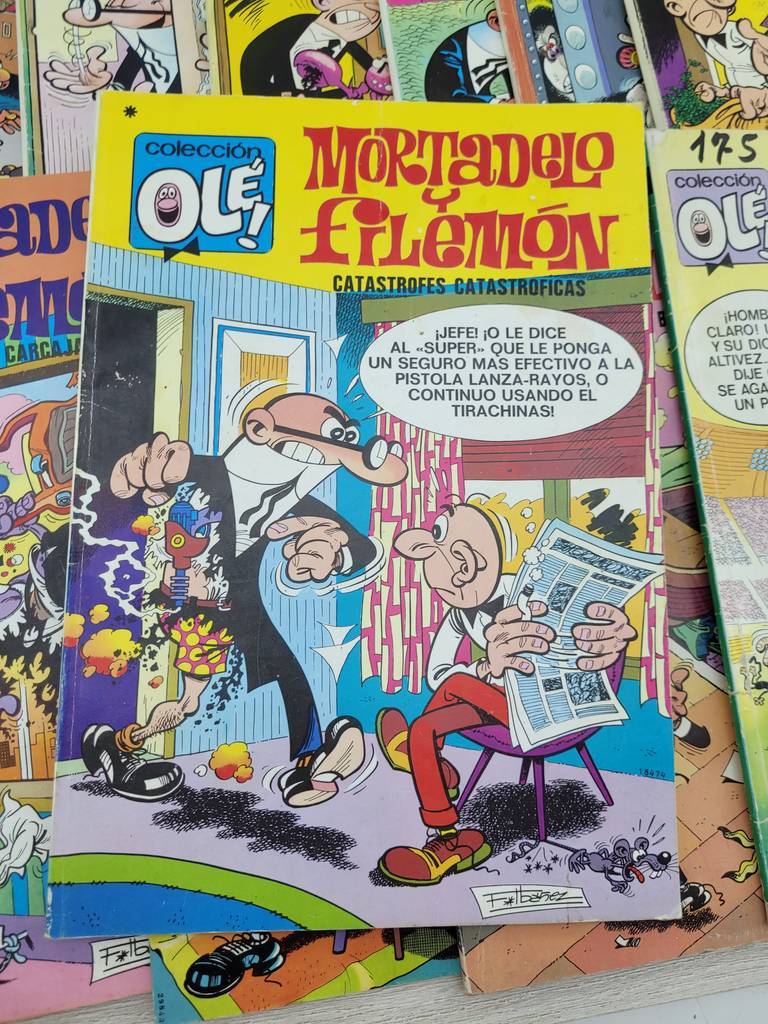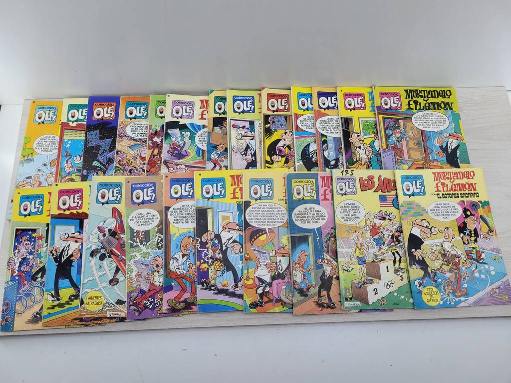 Lote de la colección Olé! de cómics “Mortadelo y Filemón” compuesto por 24 tebeos. Los números son 3, 57, 86, 87, 88, 92, 96, 97, 102, 112-M2, 115, 126, 128, 130, 145, 152, 174, 179, 205, 213, 217, 222, 232, 296-M.86. Estas revistas vintage son ideales para completar una colección. Estos divertidos cómics son perfectos para pasar un entretenido rato. Como podemos observar en las fotografías se encuentran en buen estado.