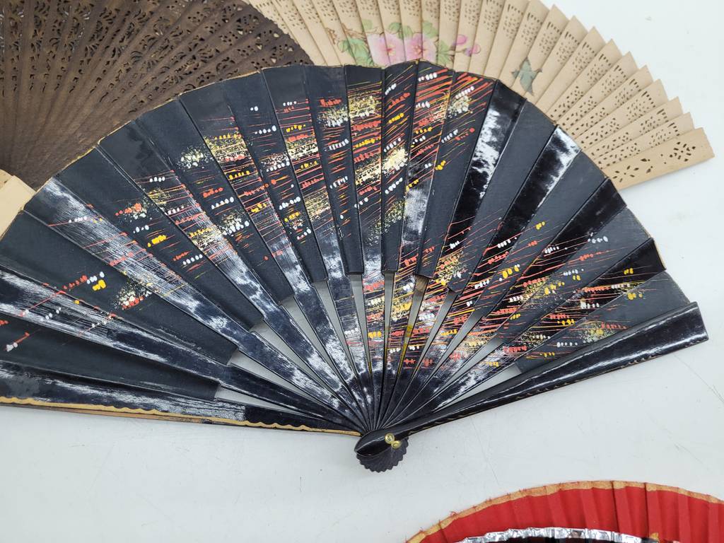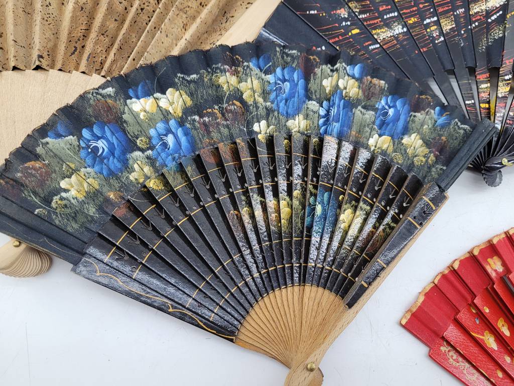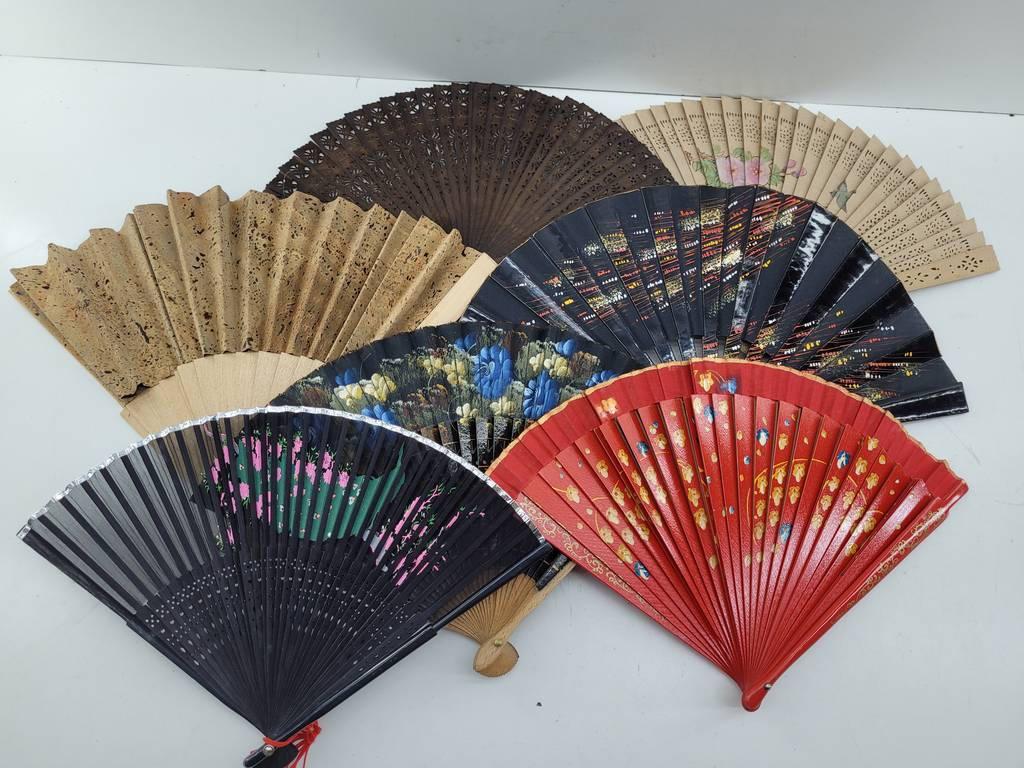 Lote compuesto por 7 abanicos de colección muy bonitos y originales con diferentes decoraciones de dibujos y colores cada uno de ellos. Como podemos observar en las fotografías se encuentran en buenas condiciones y listos para ser utilizados. Aprovecha esta oportunidad de llevarte siete complementos elegantes para el día a día a un precio muy económico.