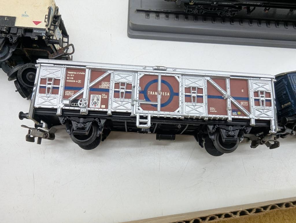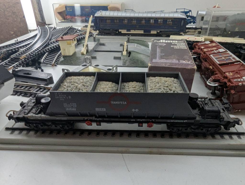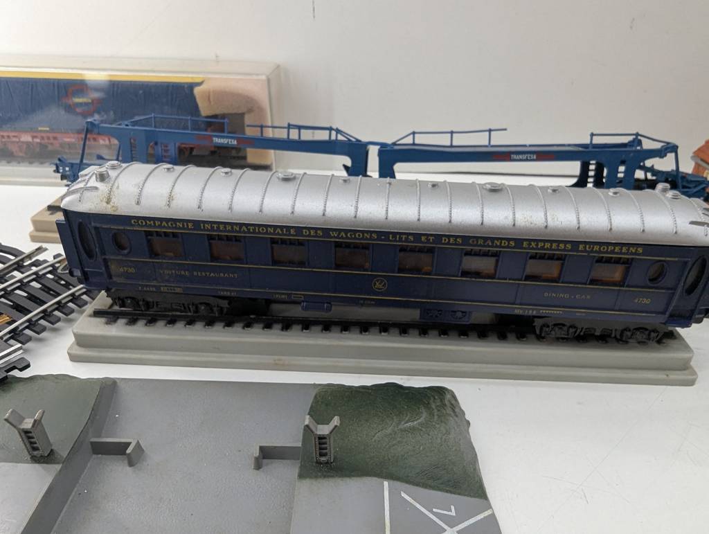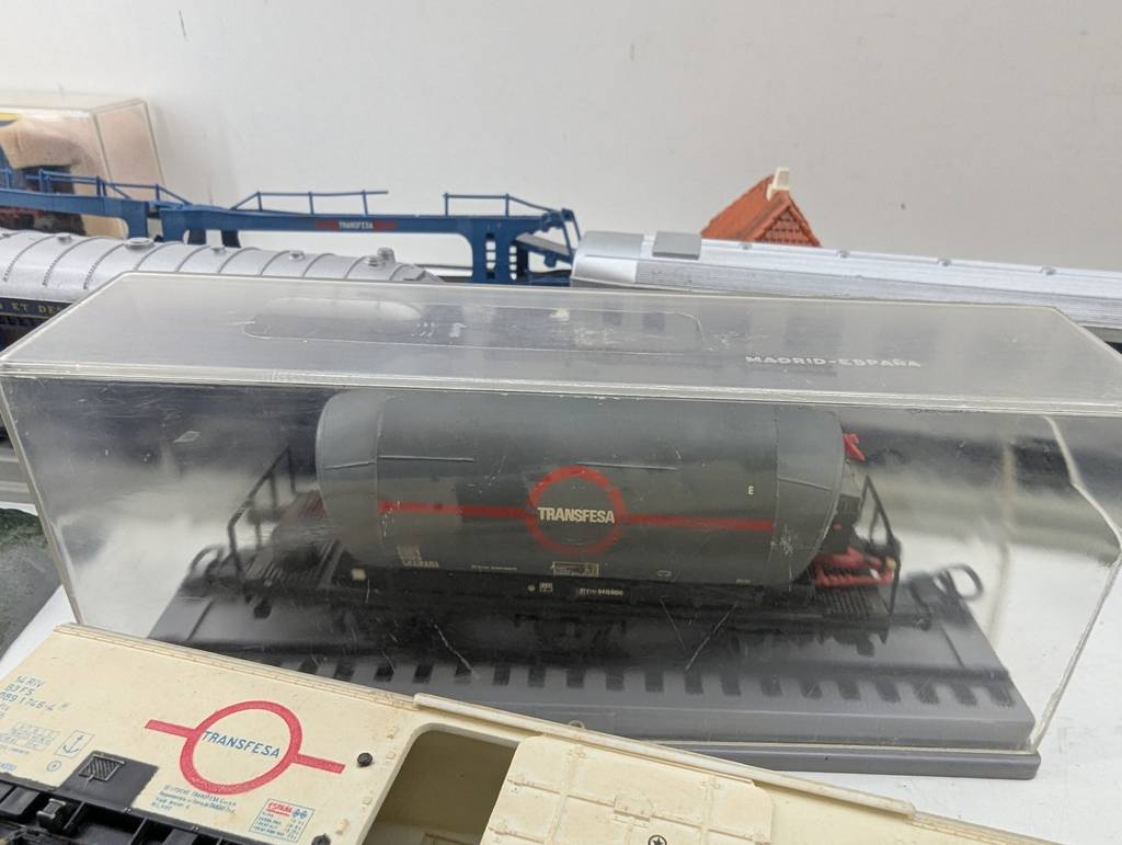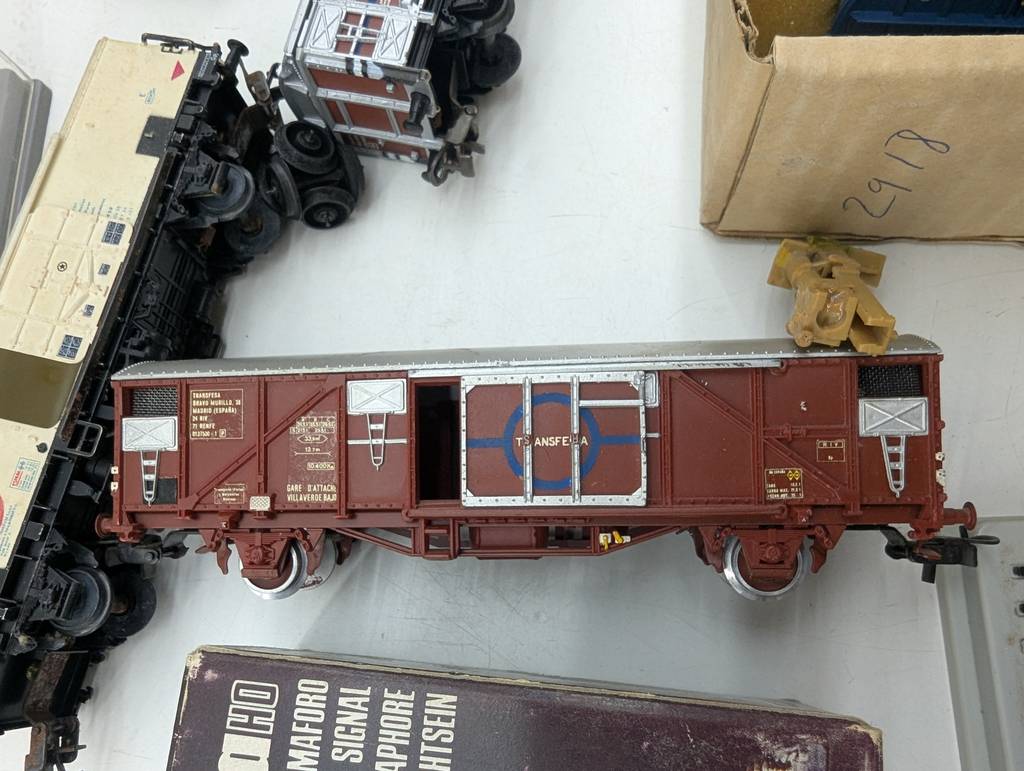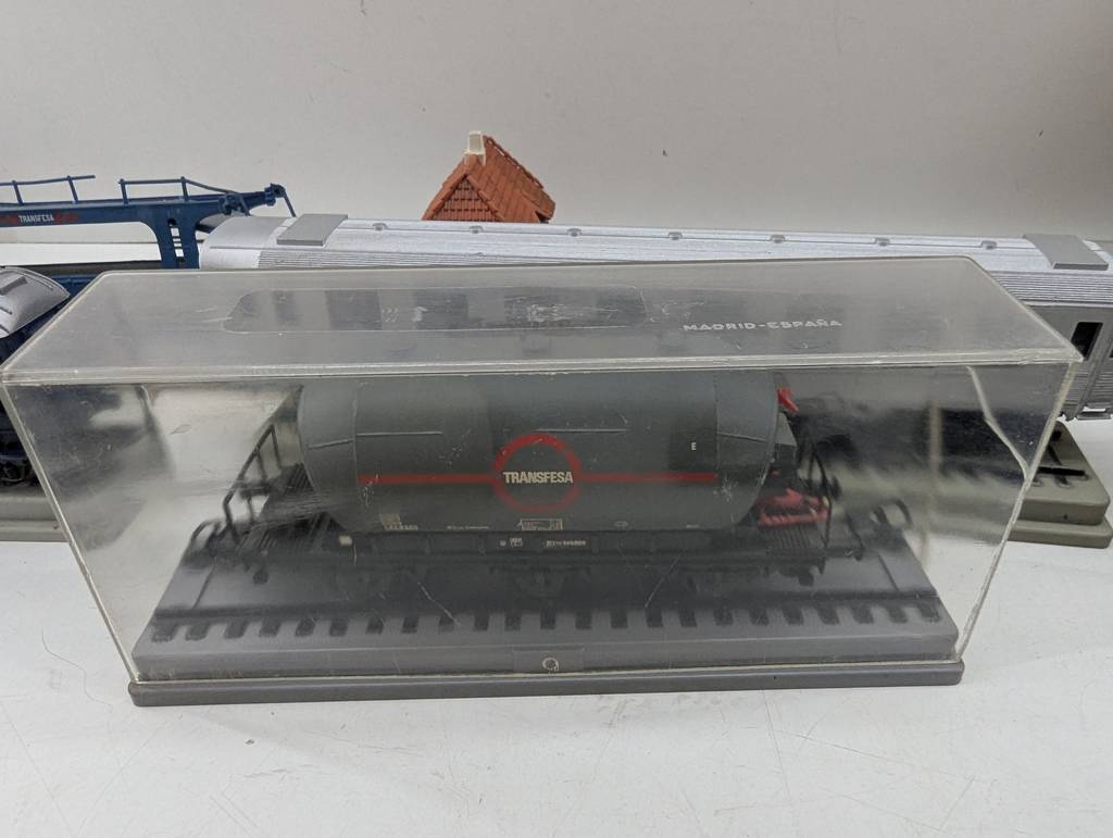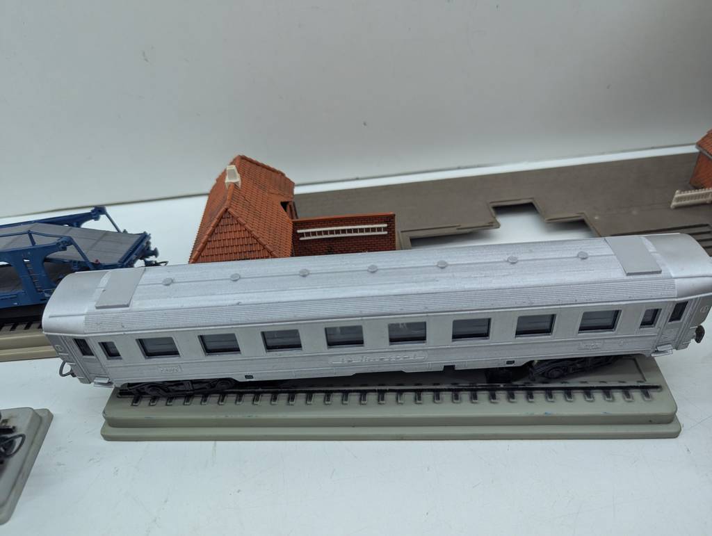 Conjunto de accesorios de tren de juguete de la marca Heljan a escala 1/87. Se trata de un pack de accesorios para jugar con un tren de juguete entre los que se encuentran un conjunto de vías, casitas, vagones, semáforos y otros elementos con los que crear una estación de tren completa. Es un conjunto ideal para coleccionistas. Como se puede observar en las fotografías se encuentran en buenas condiciones.
