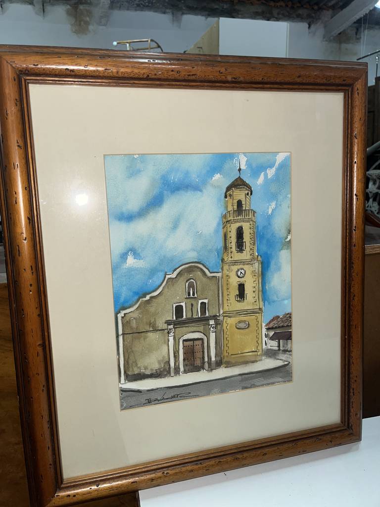 Acuarela de la iglesia de Ibáñez realizada con mucha precisión y detalle. Está enmarcada en un buen marco robusto y con buena protección de cristal. Se trata de una pieza única y original que decorará con encanto nuestro recibidor, pasillo o salón comedor. Como podemos observar en las fotografías se encuentra en buenas condiciones. Aprovecha esta oportunidad de llevarte un producto exclusivo a buen precio.