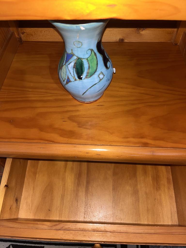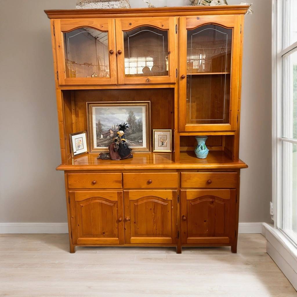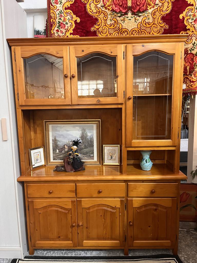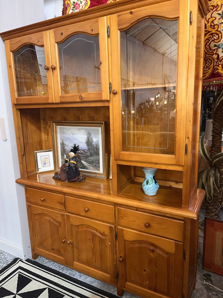 Alacena de estilo rústico que ha sido fabricada con madera de buena calidad y robusta. Está compuesta por múltiples cajones y puertas, así como una puerta de cristal transparente alta y dos pequeñas. Dispone de gran capacidad de almacenaje lo que la hace ideal para un salón comedor o cocina. Como podemos observar en las fotografías se encuentra en buenas condiciones.