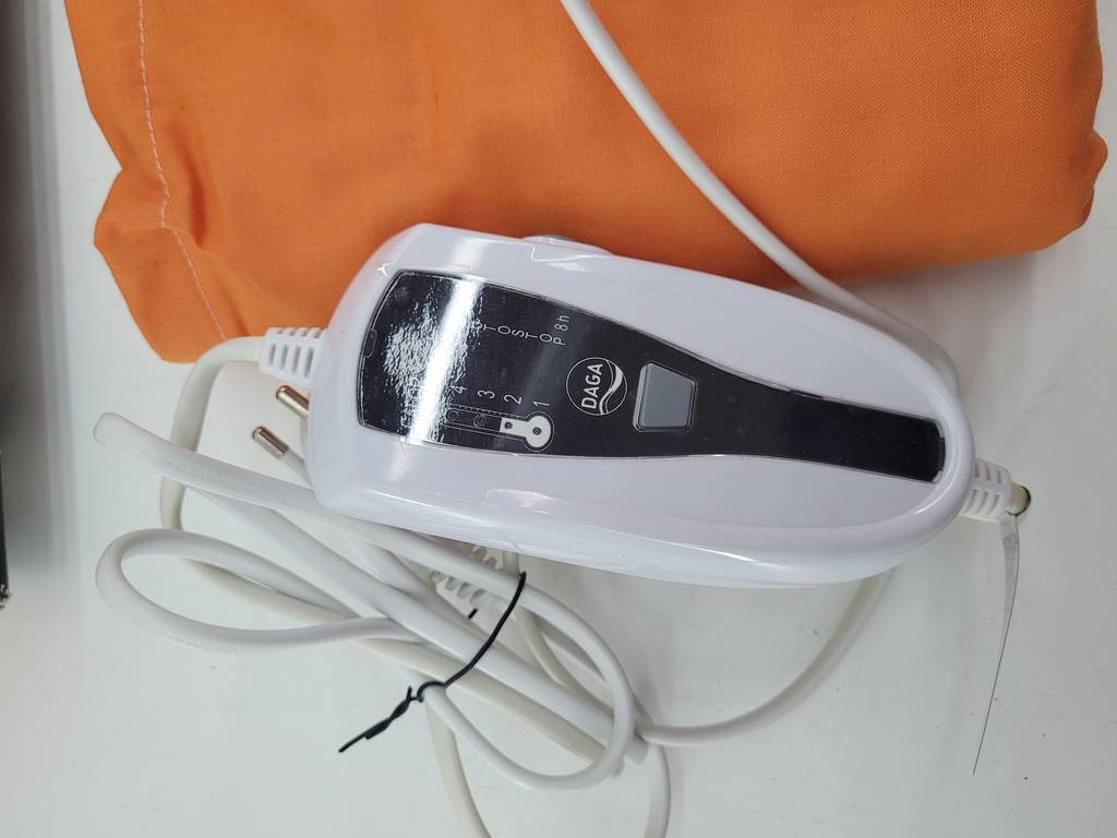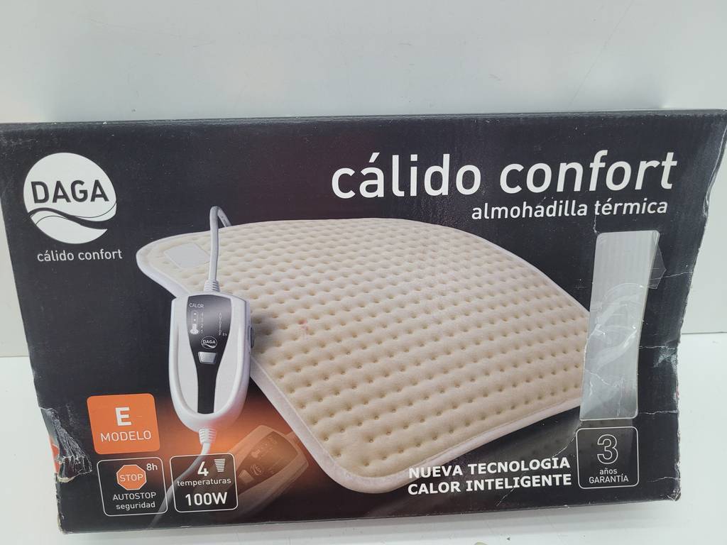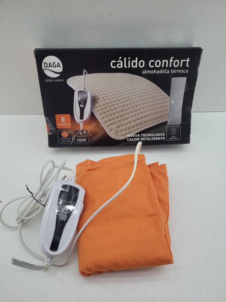 Almohadilla térmica de la marca Daga confort. Se trata de una cómoda almohadilla térmica que viene en su caja original y lleva una funda para guardarla con mayor seguridad. Es una almohadilla ideal para colocarla en la espalda para aliviar posibles dolores. Como se puede observar en las fotografías se encuentra en buenas condiciones.