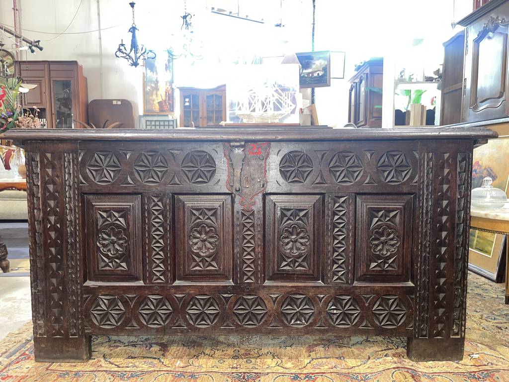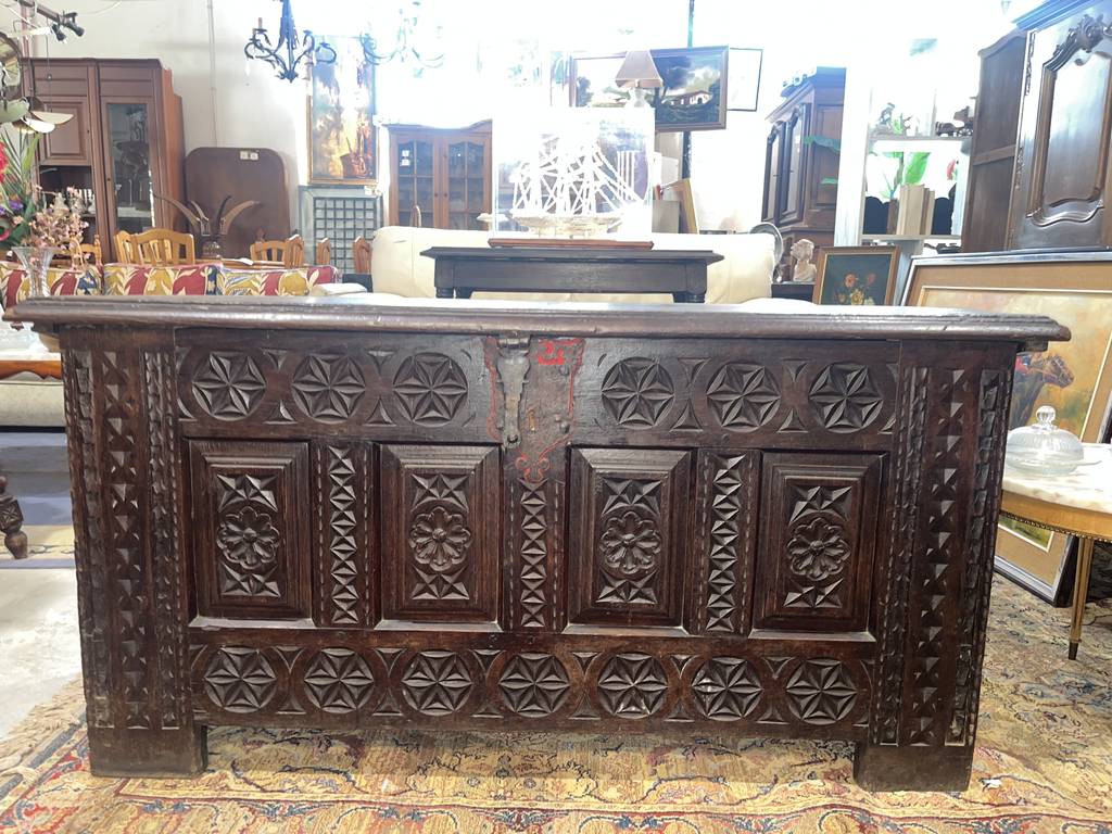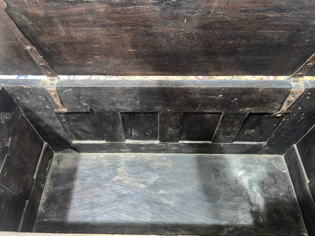 Antiguo baúl del siglo XIX fabricado en madera de buena calidad de color marrón oscuro. Se trata de un antiguo baúl robusto que cuenta con una puerta en la parte superior que se abre de forma abatible y en su interior cuenta con un amplio espacio para guardar objetos y enseres de todo tipo. Es un baúl perfecto para colocarlo en un dormitorio. Como se puede observar en las fotografías se encuentra en buenas condiciones.
