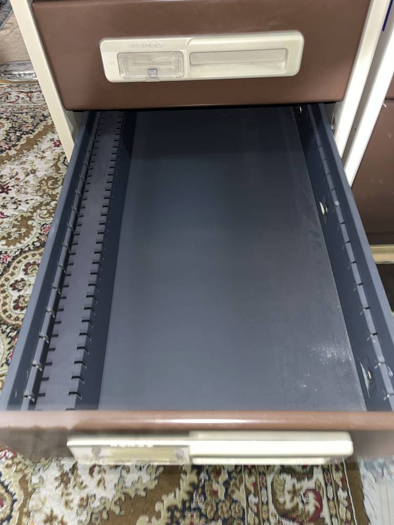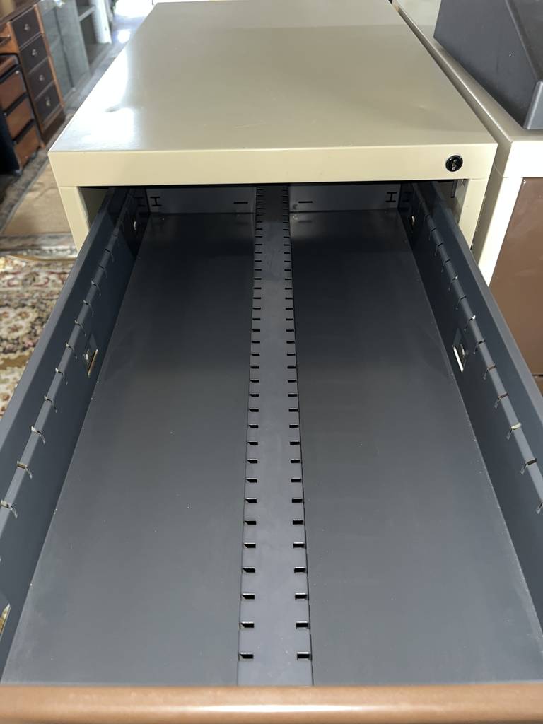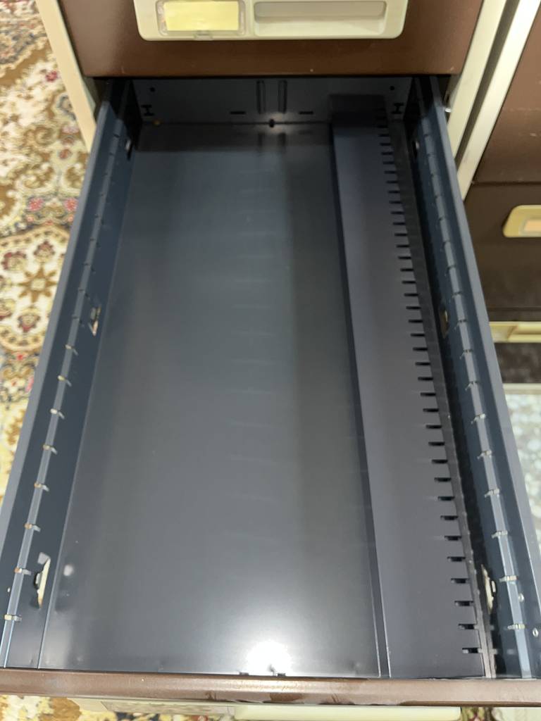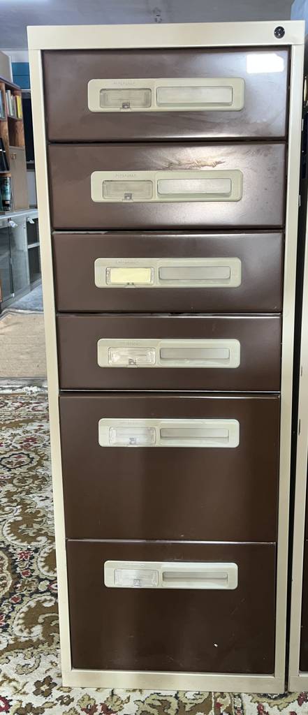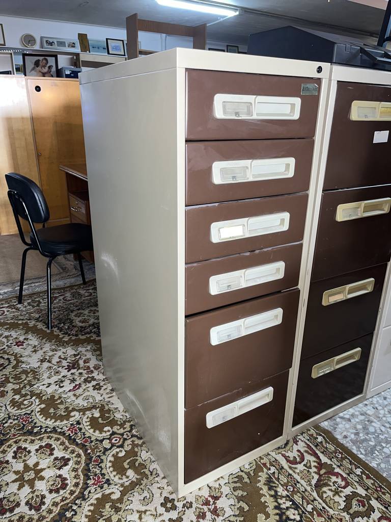 Archivador metálico con gran capacidad de almacenamiento compuesto por cuatro cajones pequeños y dos grandes. Incorpora tiradores para abrirlos cómodamente y un espacio para colocar un papel informativo de su contenido. Es un archivador ideal para una oficina o despacho. Como podemos observar en las fotografías se encuentra en buenas condiciones aunque no contiene llave.