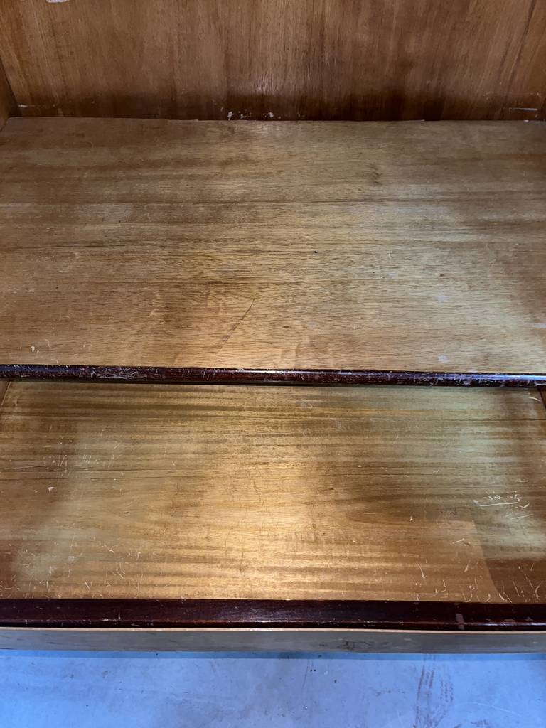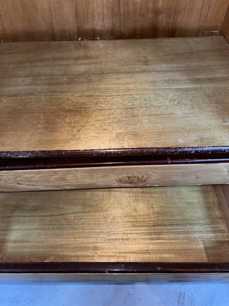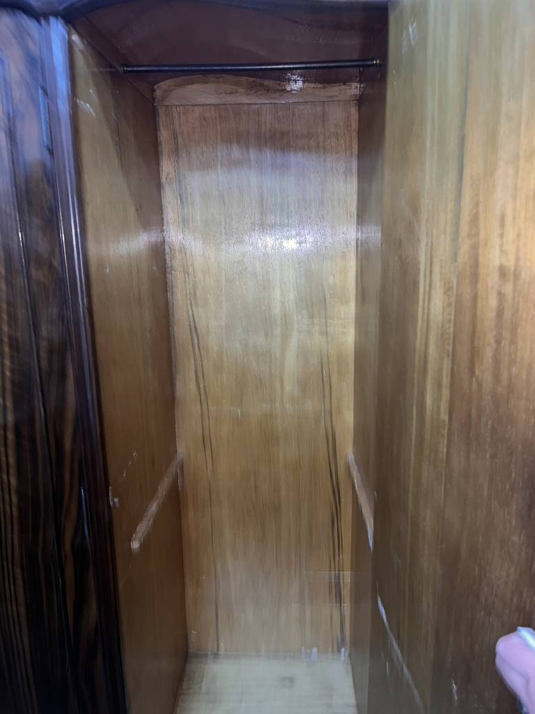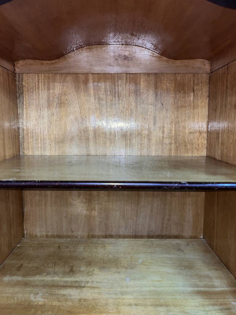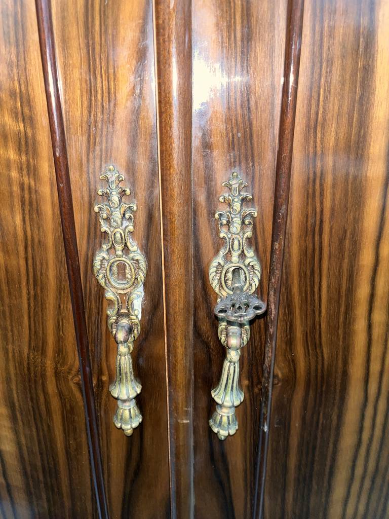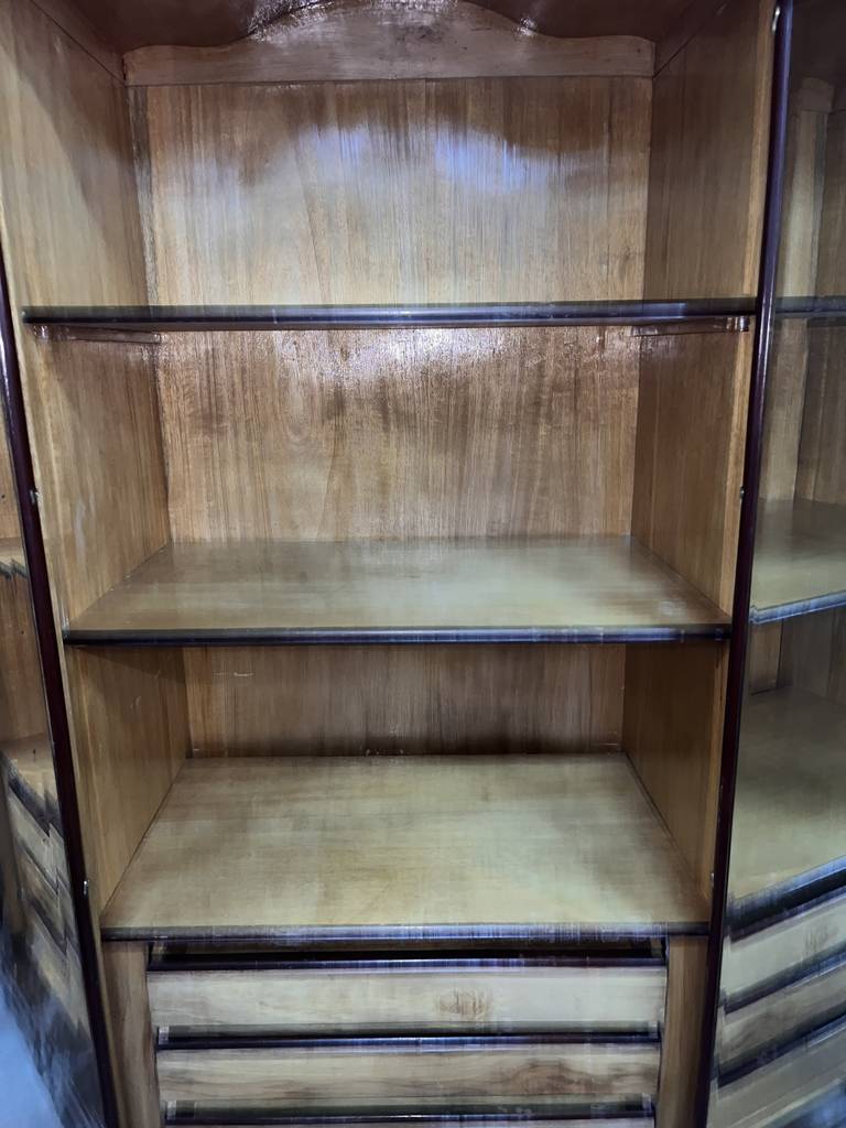 Armario de estilo clásico fabricado en madera de buena calidad de color marrón oscuro. Se trata de un armario de grandes dimensiones que cuenta con cuatro puertas con tiradores metálicos para facilitar su apertura. Es un armario que tiene un gran espacio interno para guardar muchas prendas de ropa y resulta ideal para ponerlo en un dormitorio de matrimonio. Como se puede observar en las fotografías se encuentra en buenas condiciones.
