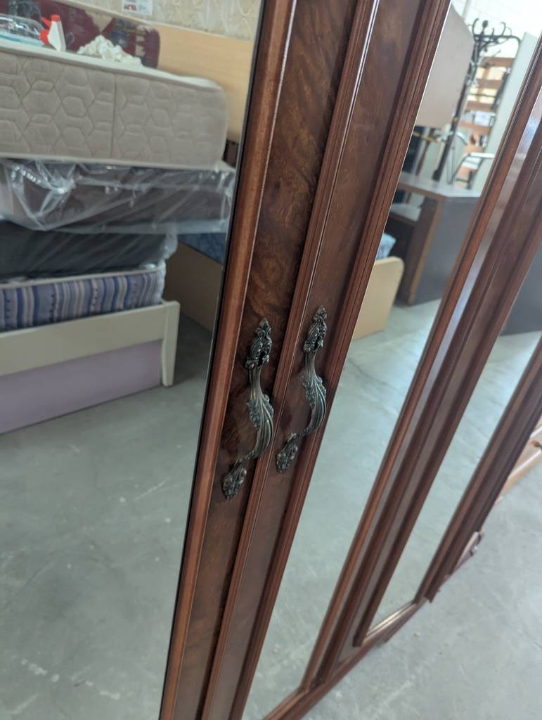 Armario de seis puertas fabricado en madera de buena calidad de color marrón oscuro. Se trata de un armario amplio que cuenta con seis puertas y tiene cuatro cristales a modo de espejo en algunas de las puertas. Es un armario amplio en el que se puede guardar gran cantidad de ropa y resulta perfecto para colocarlo en un dormitorio de matrimonio. Como se puede observar en las fotografías se encuentra en buenas condiciones.
