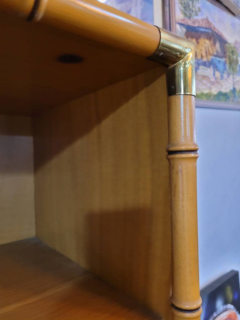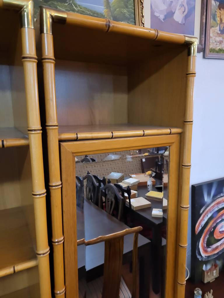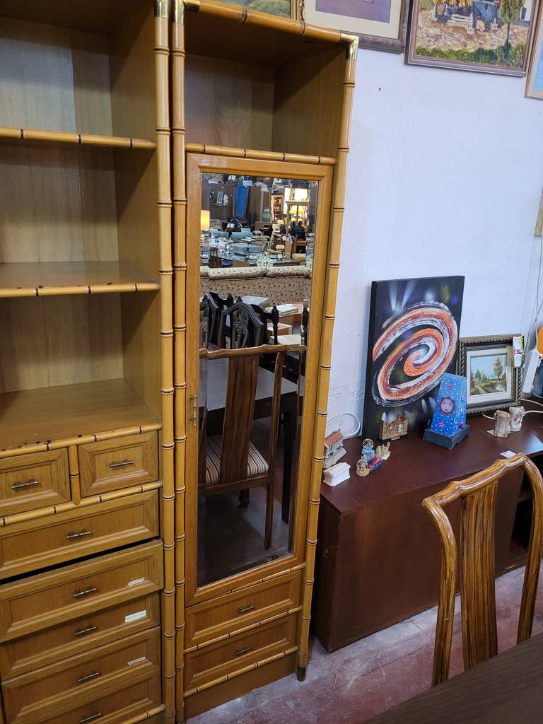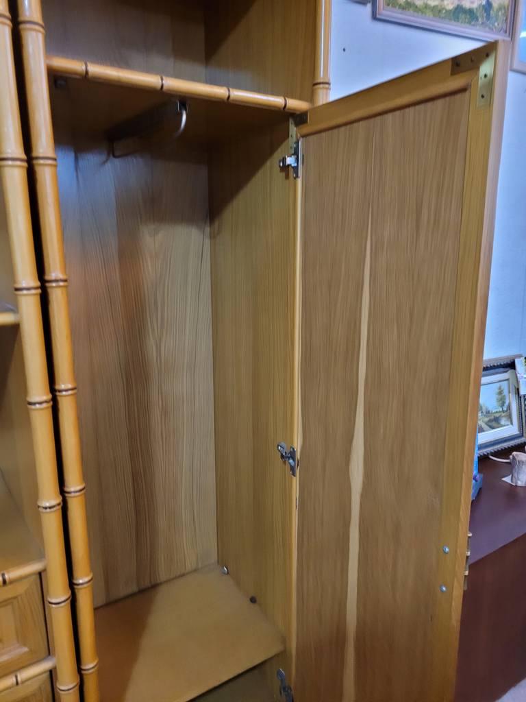 Armario estrecho con un estilo muy original con finas tablas de bambú frontales y con una estructura que ha sido fabricada con madera de buena calidad y robusta. Se compone de un espejo alto frontal con compartimento interior con percha, dos cajones y un habitáculo abierto. Es ideal para colocar en un dormitorio o recibidor. Como podemos observar en las fotografías se encuentra en buenas condiciones.