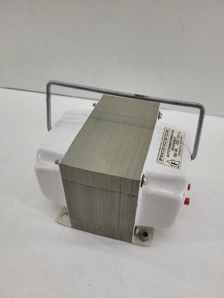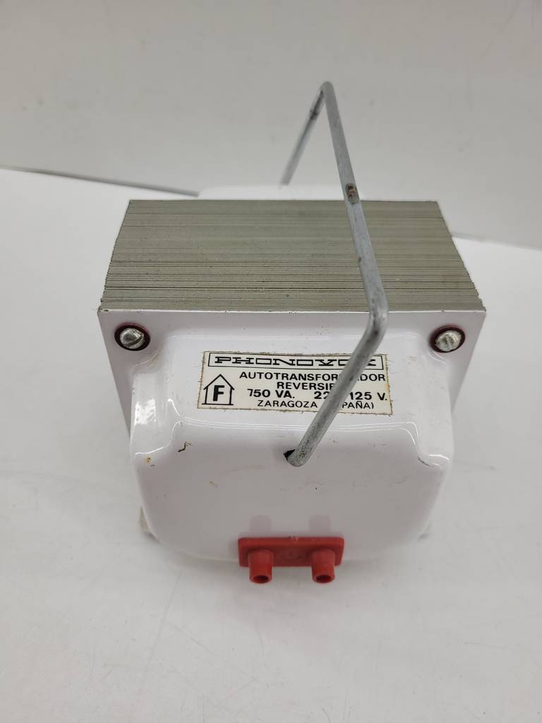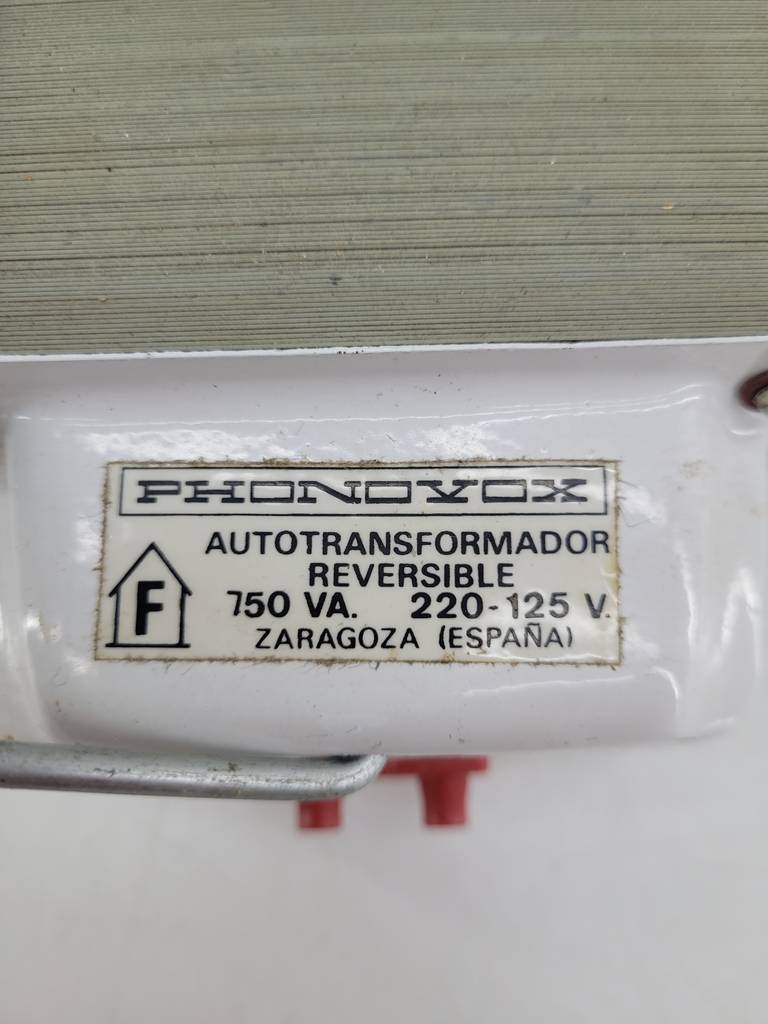 Autotransformador monofásico reversible con 750VA y 220-125V. Se trata de un autotransformador de la marca PHONOVOX de muy buena calidad y duradero que ha sido fabricado en Zaragoza (España). Como podemos observar en las fotografías se encuentra en buenas condiciones y listo para ser utilizado.