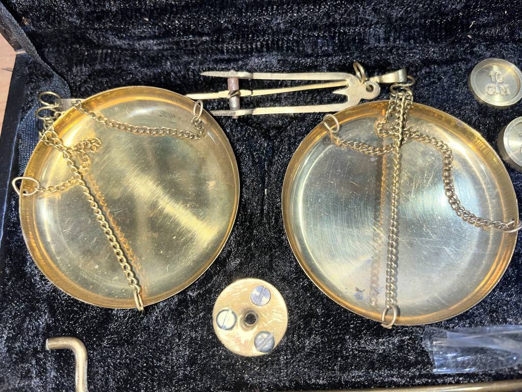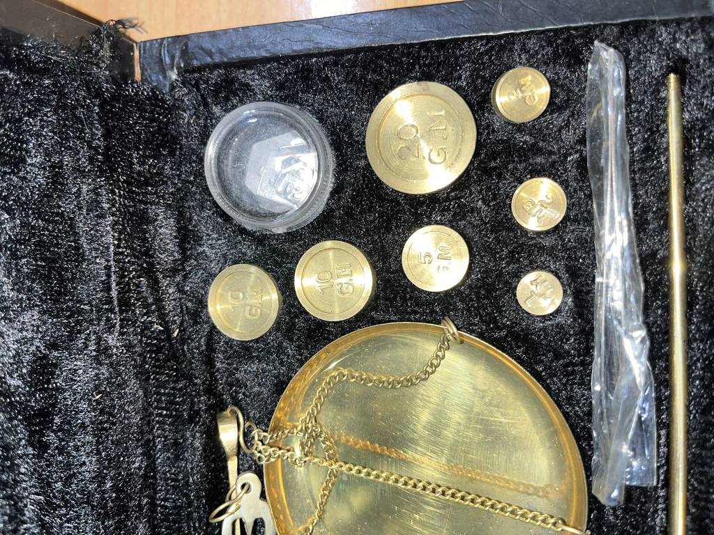 Juego completo de una balanza de precisión con todos los accesorios incluidos para ser utilizada. Se trata de una pieza ideal para un joyero profesional y poder realizar los pesajes con efectividad de todas las piezas. Incluye un maletín para un transporte mas seguro. Como podemos observar en las fotografías se encuentra en buen estado de conservación y lista para ser utilizada.