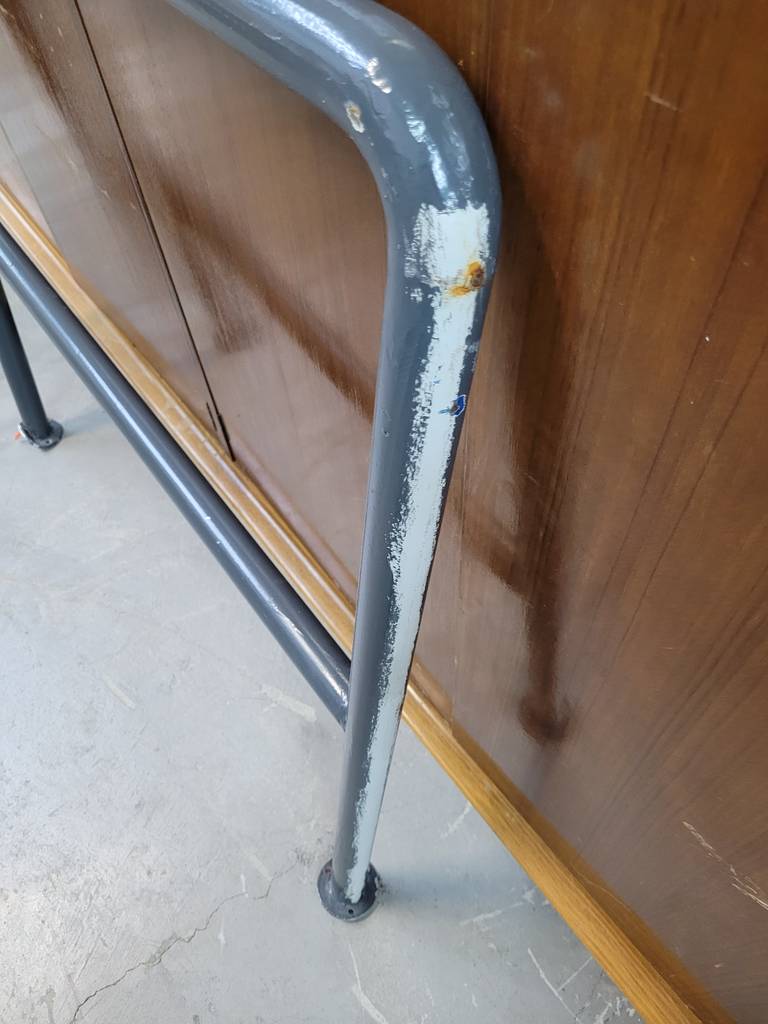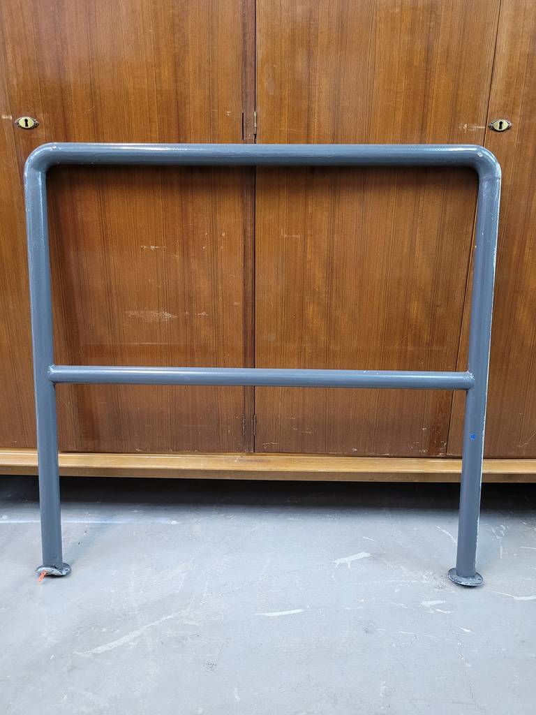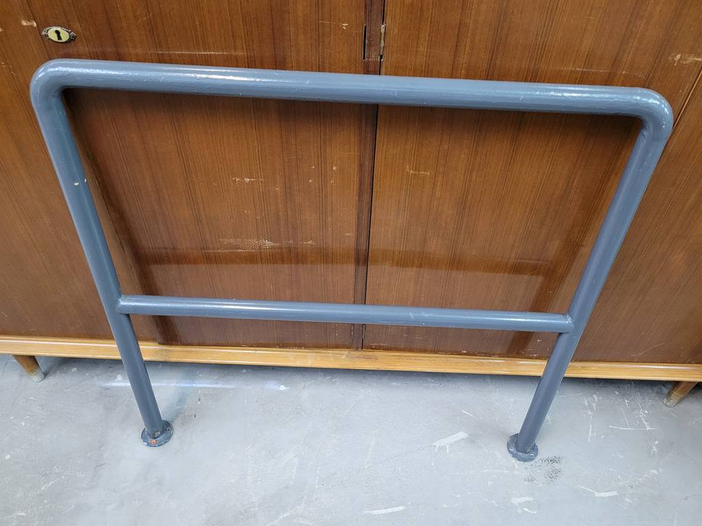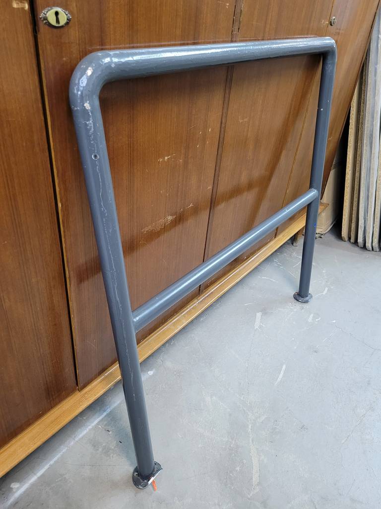 Barrera de seguridad fabricada en acero galvani de buena calidad de color gris. Se trata de una barrera de seguridad que cuenta con dos patas y una parte central con dos soportes. Es una barrera ideal para colocarla en cualquier lugar en el que necesitemos seguridad extra. Como se puede observar en las fotografías se encuentra en buenas condiciones.
