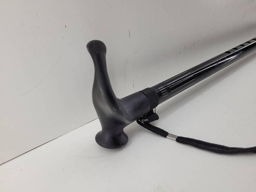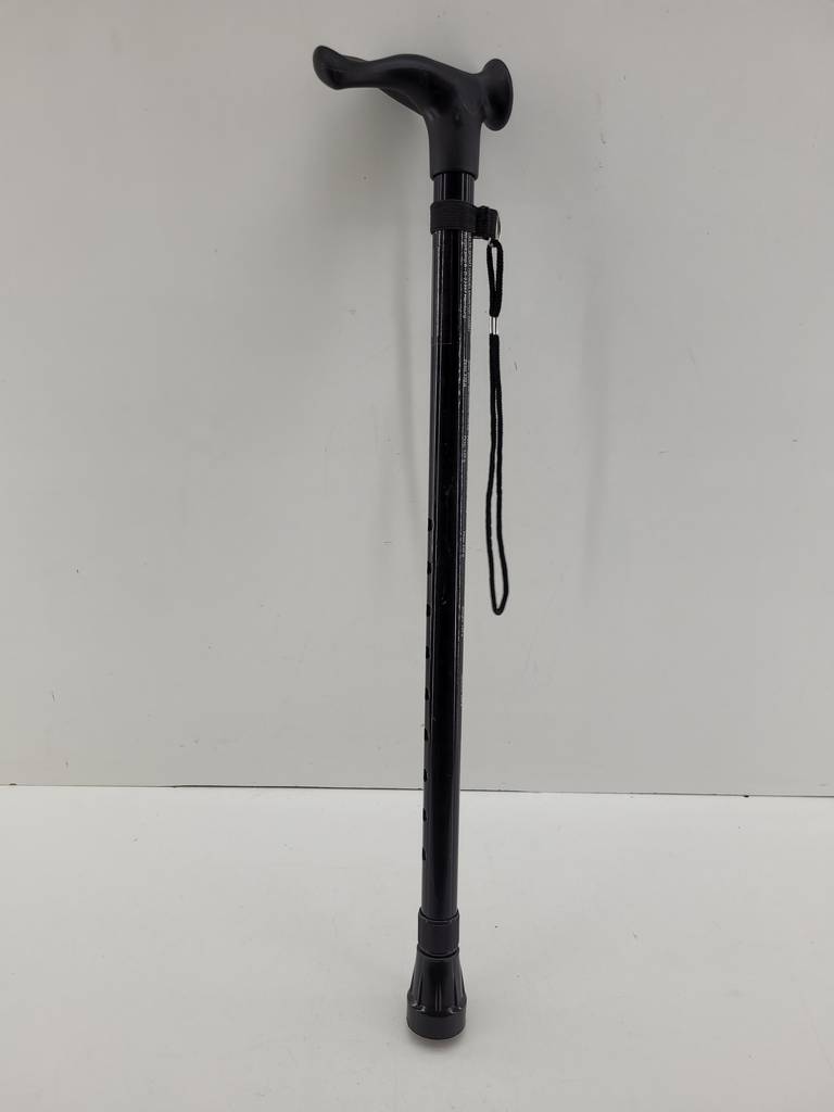 Bastón ortopédico con mango anatómico de color negro. Se trata de un práctico bastón ortopédico que cuenta con un cordel para poder atarlo en cualquier lugar. Es un bastón ideal para todas aquellas personas que cuenten con una movilidad reducida y tengan dificultades para caminar. Como se puede observar en las fotografías se encuentra en buenas condiciones.