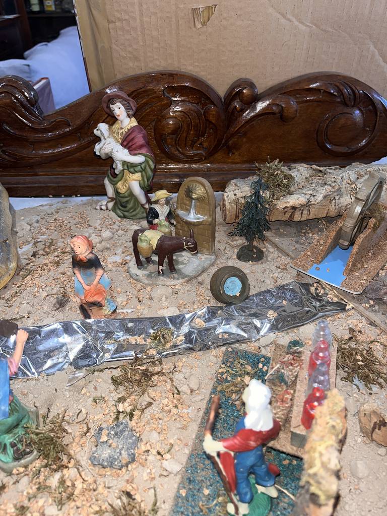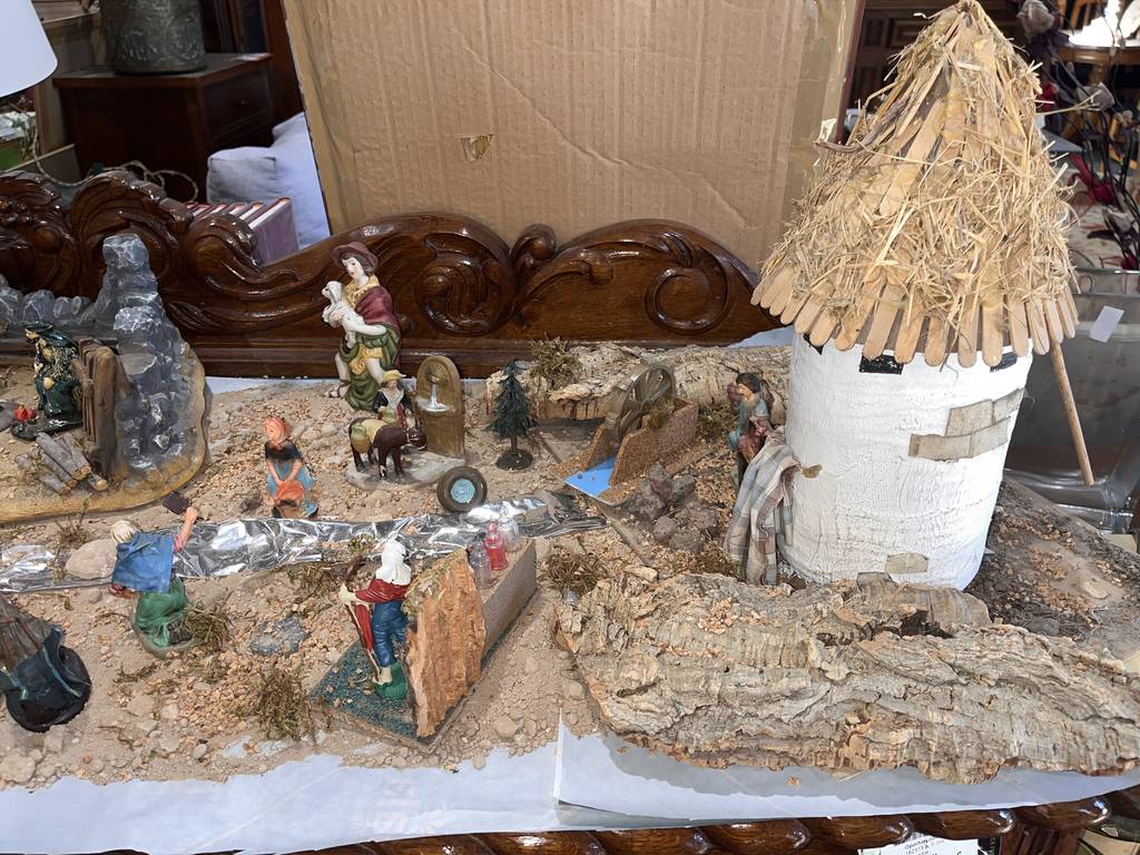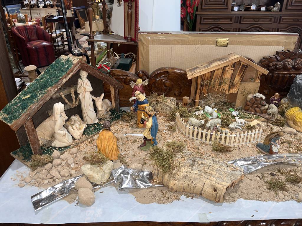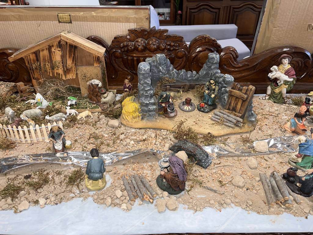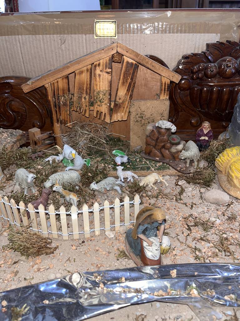 Belén navideño completo de grandes dimensiones. Se trata de un conjunto de piezas de tamaño pequeño entre las que se encuentran el nacimiento completo y demás personajes que acompañan el nacimiento del niño Jesús. Es un belén ideal para montarlo en la época navideña en un salón comedor de gran tamaño. Como se puede observar en las fotografías las piezas se encuentran en buenas condiciones.