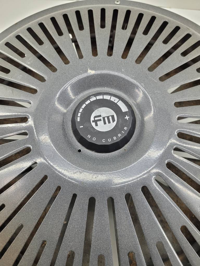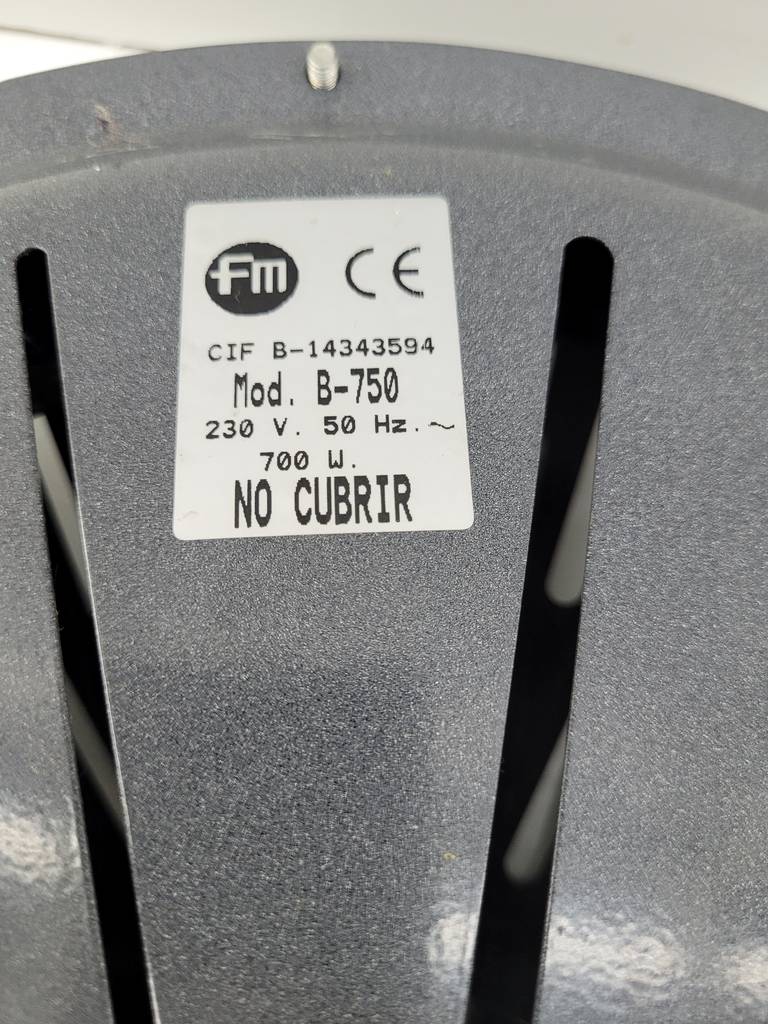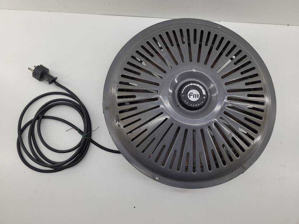Brasero eléctrico de la marca FM modelo B-750 con regulador de potencia. Es ideal para calentarnos en las frías noches de invierno acompañado de una mesa camilla, por ejemplo. Se trata de un brasero muy útil y compacto que podemos guardar sin ocupar mucho espacio cuando no lo utilicemos. Como podemos observar en las fotografías se encuentra en buenas condiciones.