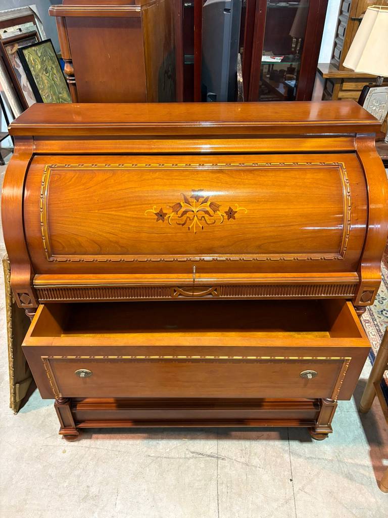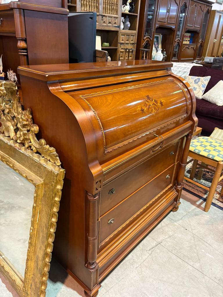 Buró de estilo clásico que ha sido fabricado con madera de buena calidad y robusta. Se compone de una tapa abatible superior y en su interior pequeños cajones y habitáculos. También tiene en la parte inferior dos cajones. Es un buró muy bonito y elegante que resaltará en un dormitorio o salón comedor. Como podemos observar en las fotografías se encuentra en buenas condiciones.