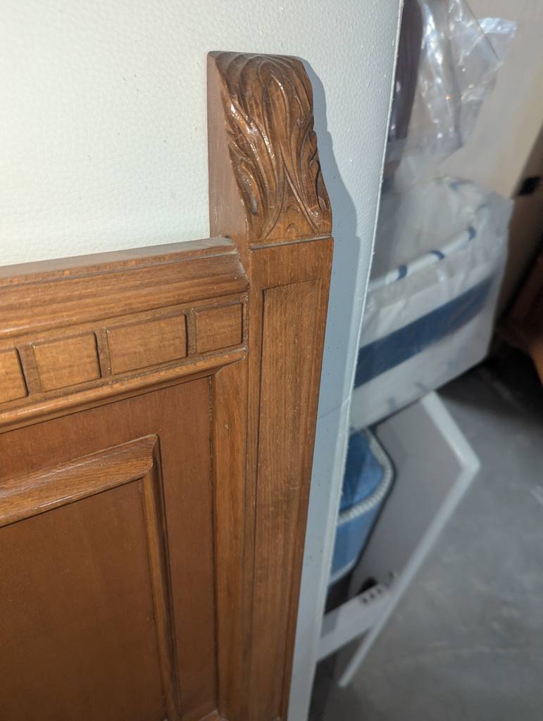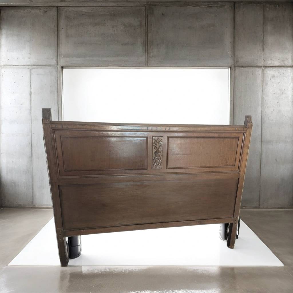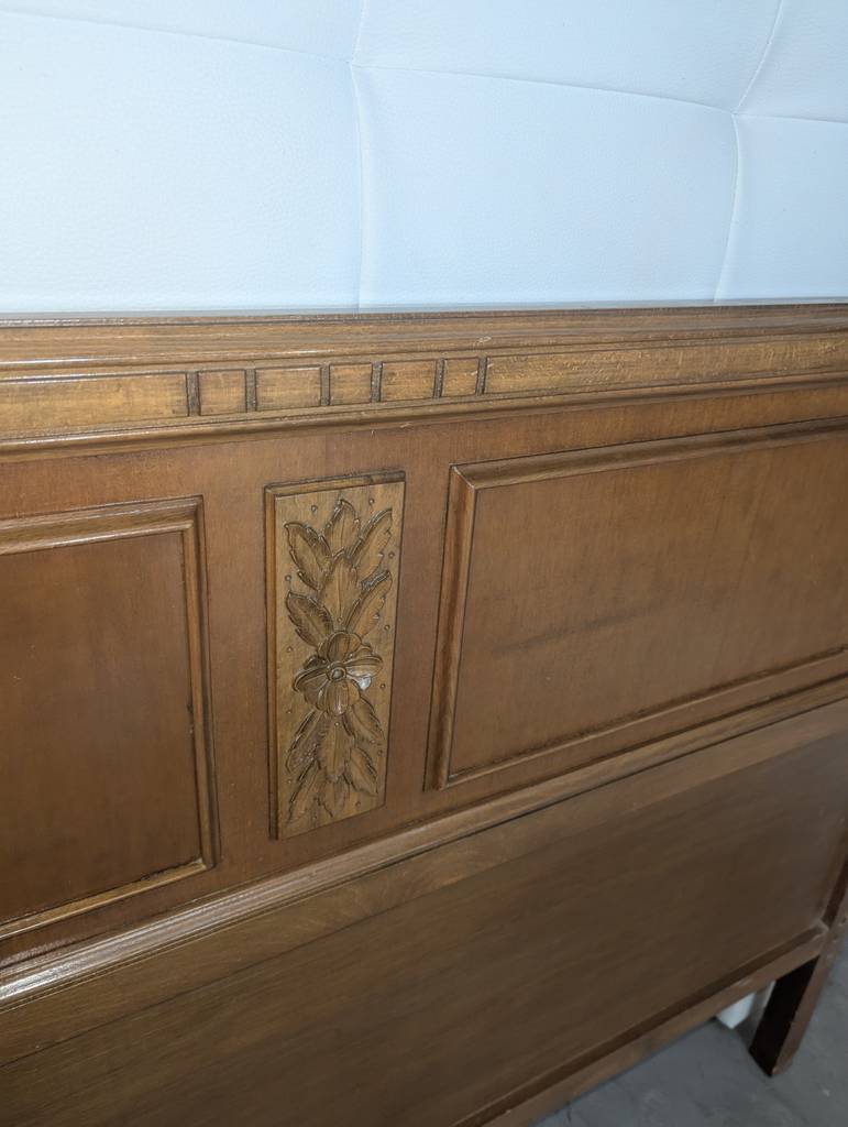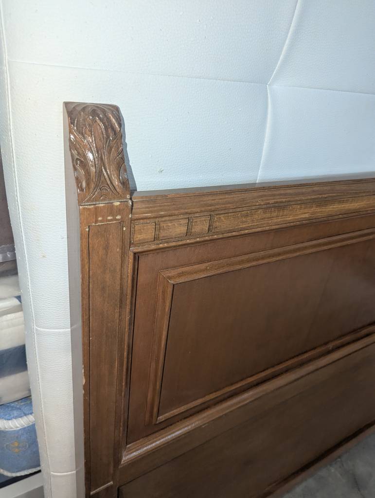 Cabecero de cama fabricado en madera de buena calidad de color marrón oscuro. Se trata de un cabecero de cama antiguo que resulta perfecto para colocarlo en la cabeza de una cama de ciento treinta y cinco centímetros de ancho en un dormitorio de matrimonio. Como se puede observar en las fotografías se encuentra en buenas condiciones para ser utilizado.