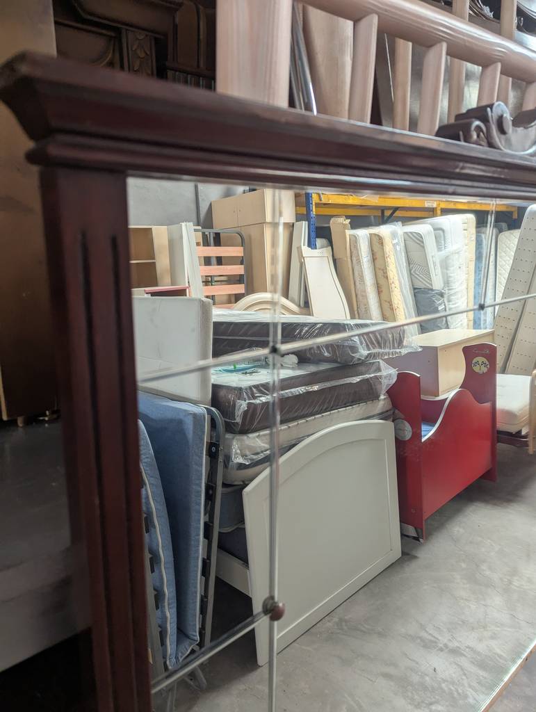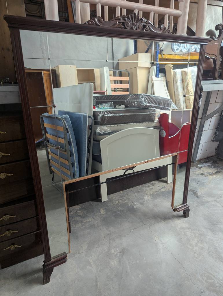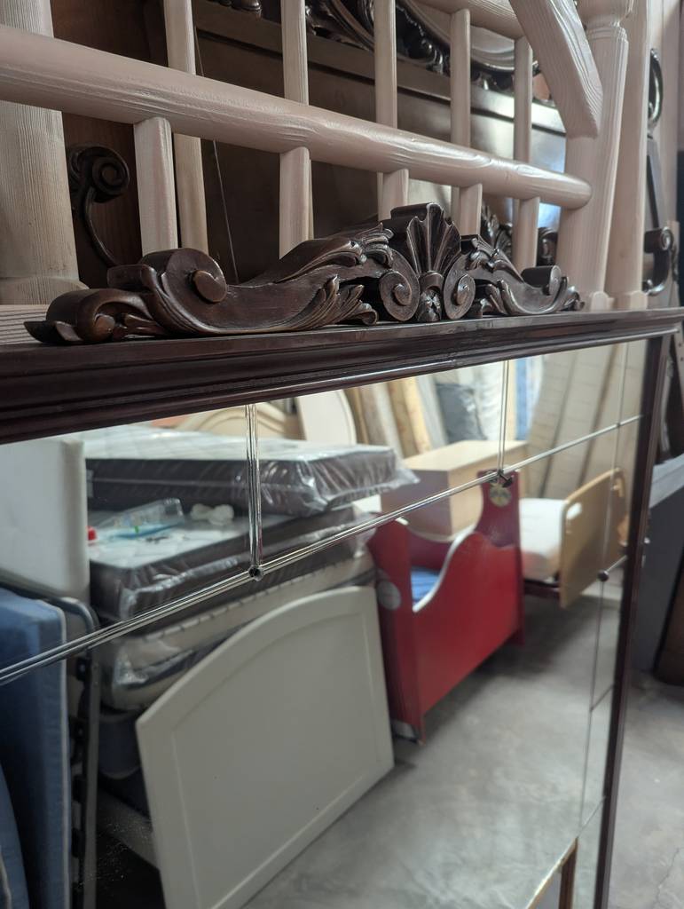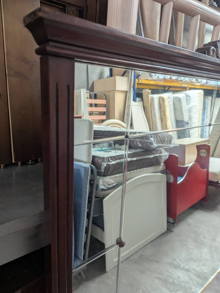 Cabecero de cama con espejo de estilo clásico fabricado en madera de buena calidad de color marrón oscuro. Se trata de un cabecero de cama que tiene un espejo en toda su superficie y resulta ideal para colocarlo en la cabeza de una cama de ciento treinta y cinco centímetros de ancho en un dormitorio de matrimonio. Como se puede observar en las fotografías se encuentra en buenas condiciones.