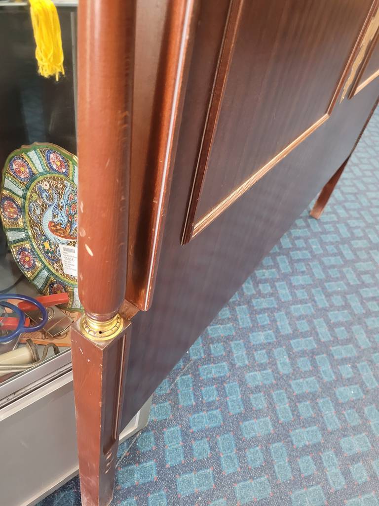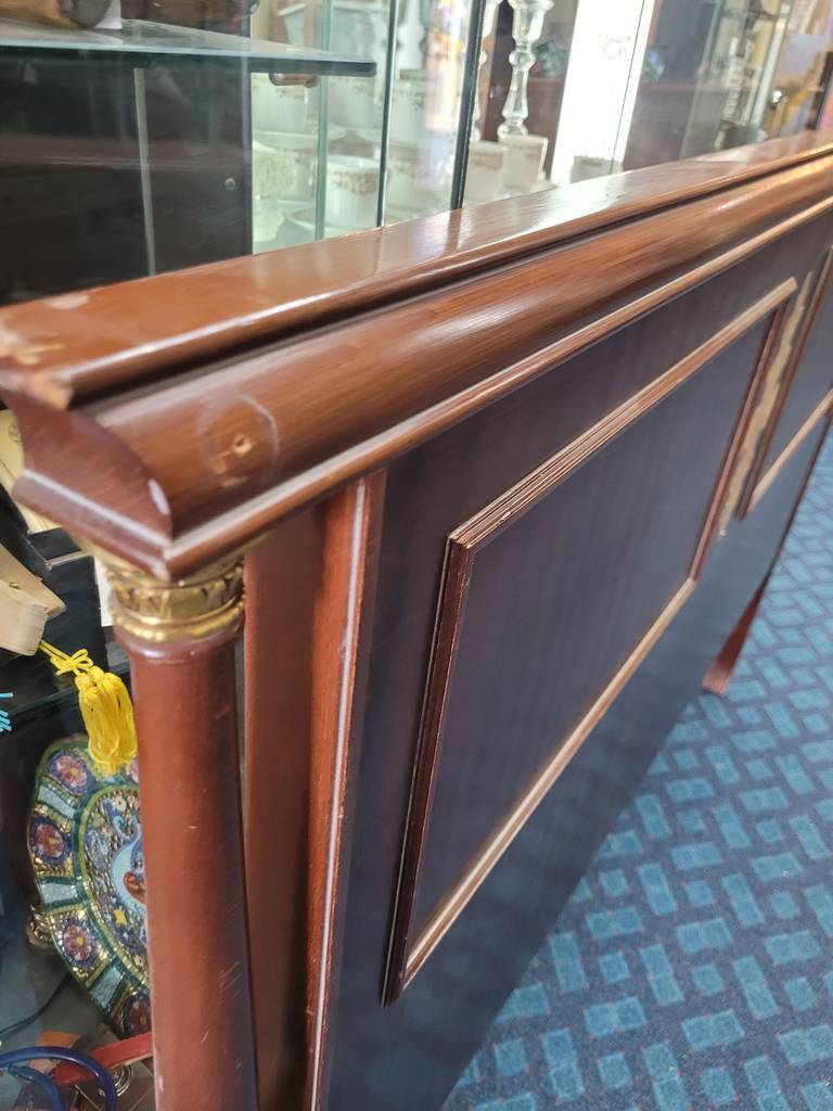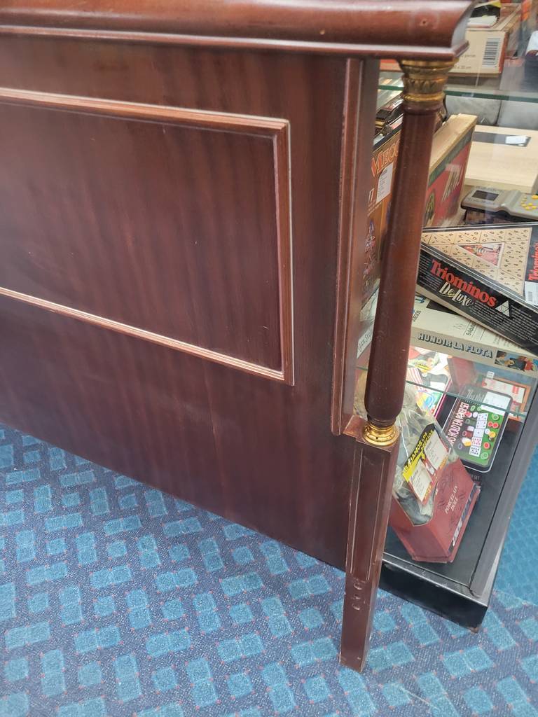 Cabezal o cabecero de estilo clásico que ha sido fabricado con madera de buena calidad y robusta. Incorpora dos patas laterales con agujeros ya preparados para ser colocada en pared con buena sujeción. Es ideal para colocar en un dormitorio haciéndolo resaltar. Como podemos observar en las fotografías se encuentra para restaurar.