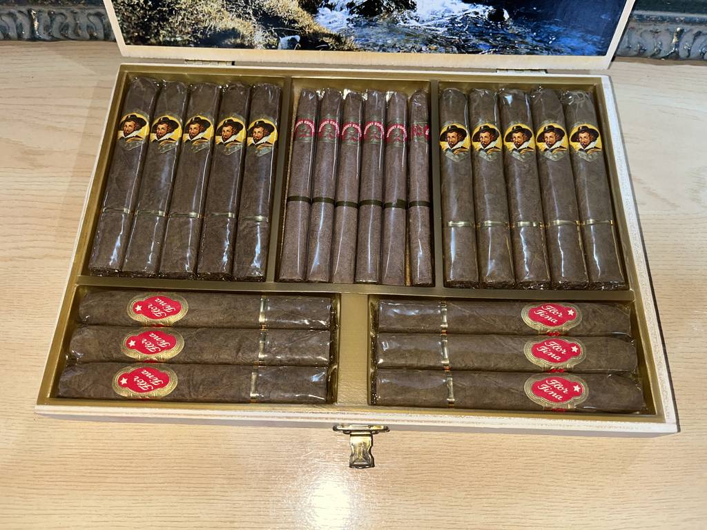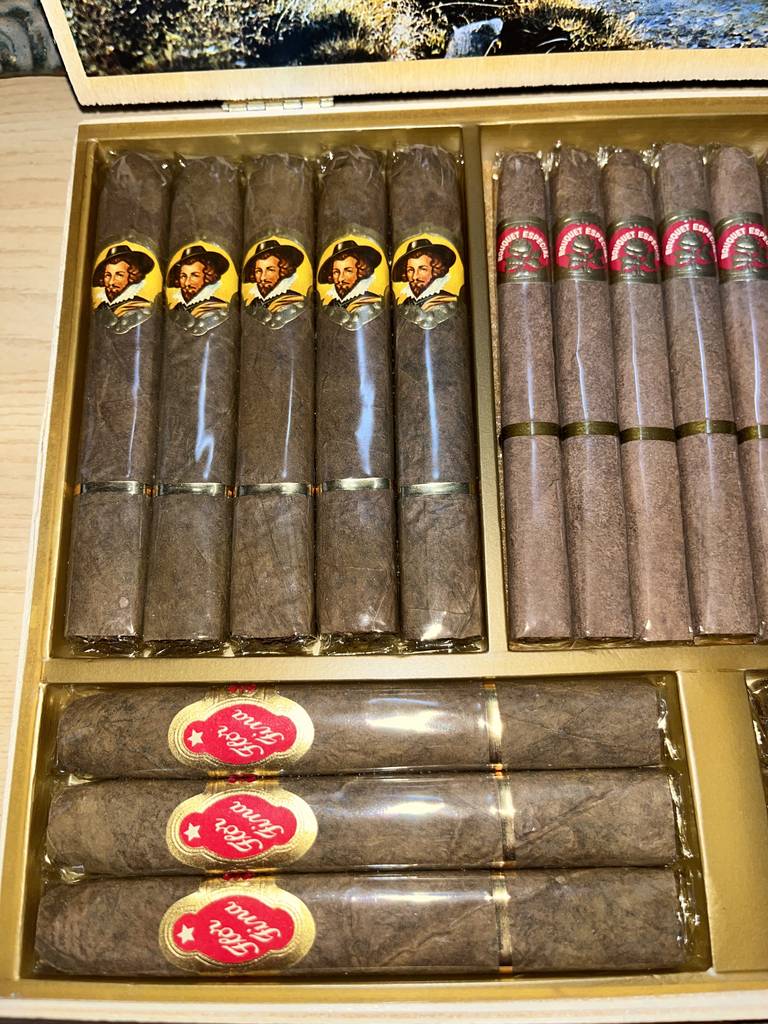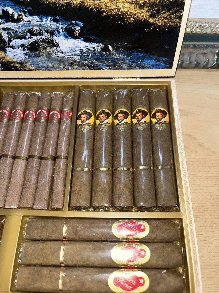 Caja de madera de 22 puros de la marca Petit Bouquet. Se trata de una caja de madera cuadrada en la que se pueden ver 22 puros muy bien colocados. Es una caja de puros ideal para regalarla a una persona fumadora o para tenerla guardada como elemento de coleccionistas. Como se puede observar en las fotografías se encuentra en buenas condiciones.