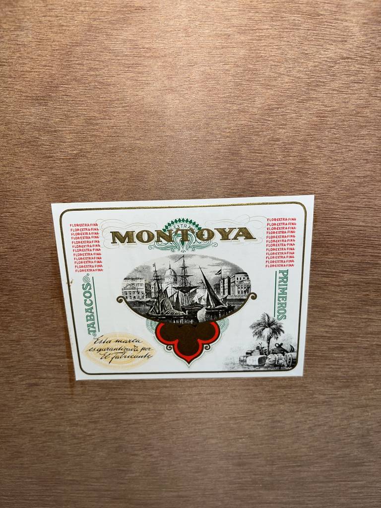 Caja de madera de 30 puros de la marca Montoya. Se trata de una caja de madera cuadrada en la que se pueden ver 30 puros muy bien colocados. Es una caja de puros ideal para regalarla a una persona fumadora o para tenerla guardada como elemento de coleccionistas. Como se puede observar en las fotografías se encuentra en buenas condiciones.