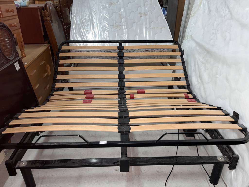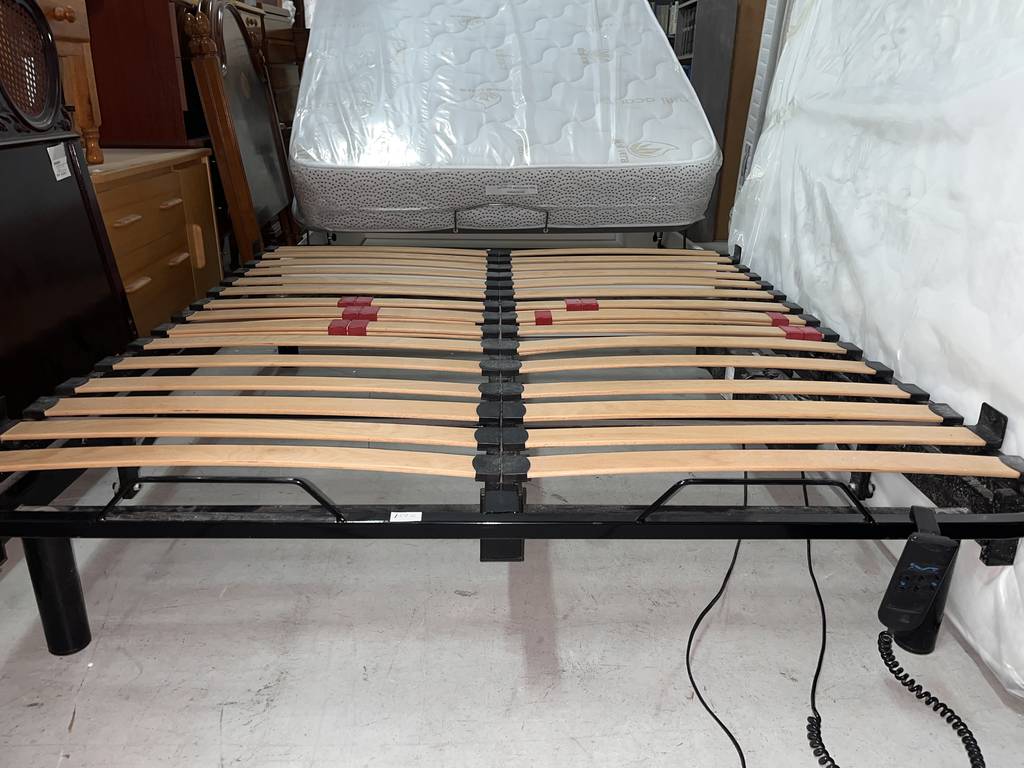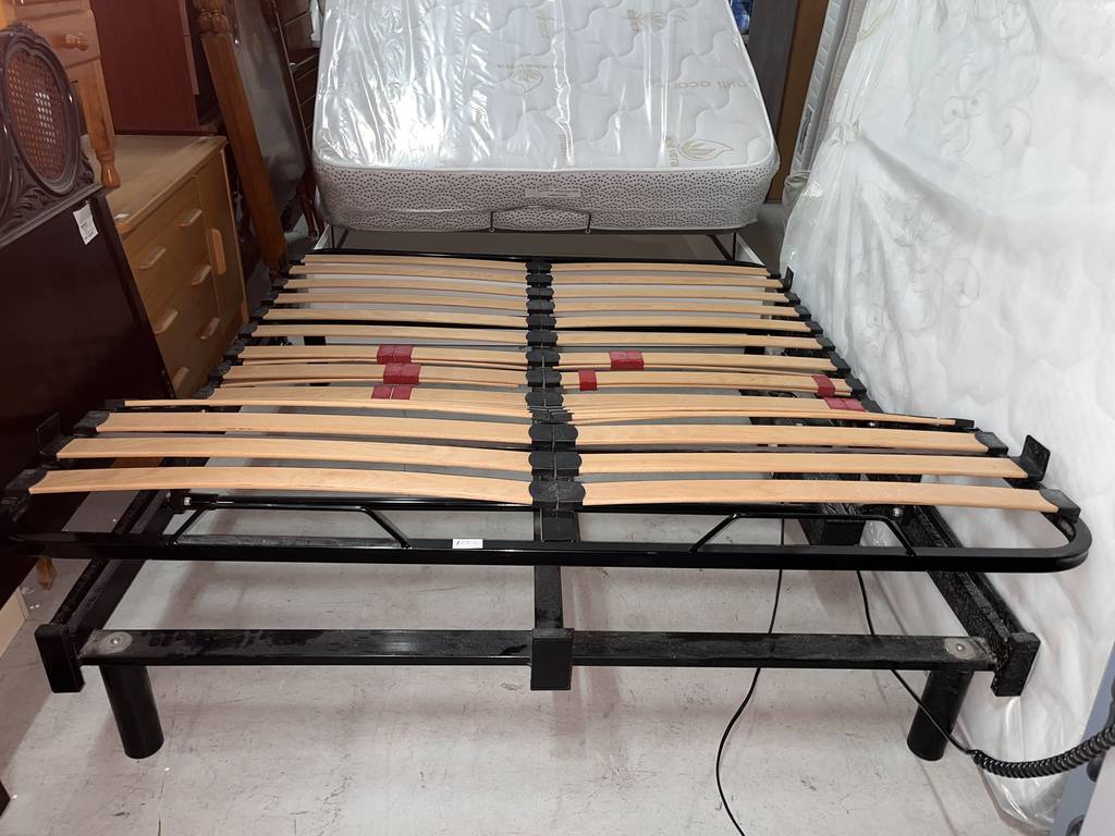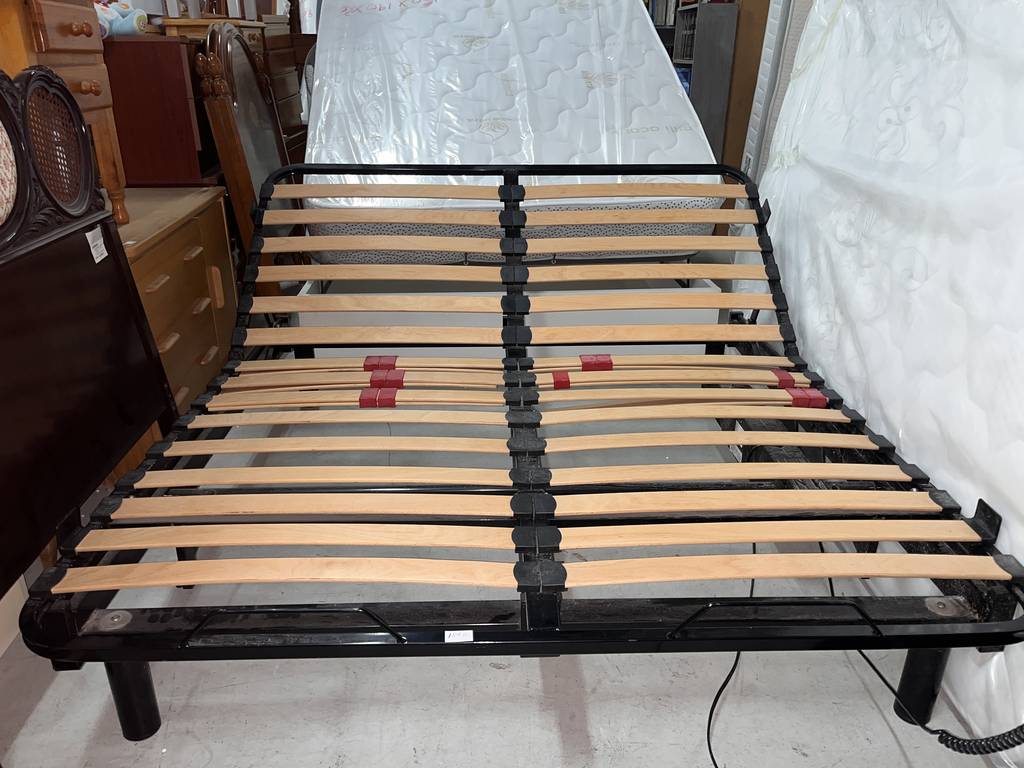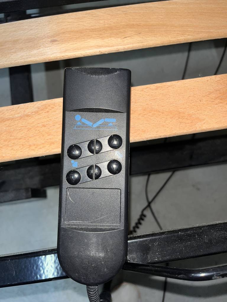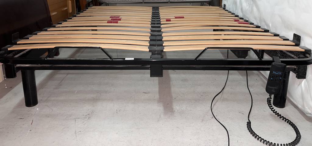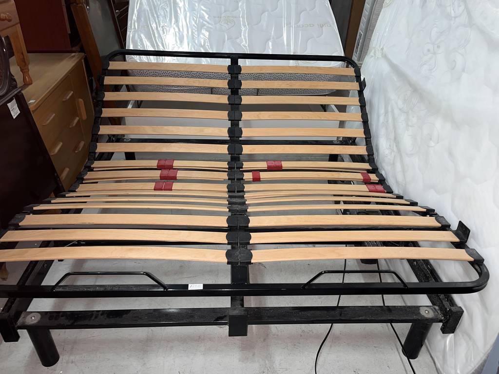 Cama articulada doble cuya estructura está fabricada en metal de color negro con dos somieres con tablas de madera. Se trata de una cama articulada doble que cuenta con un mando para poder controlarla y tiene unas medidas de ciento treinta y cinco centímetros de ancho por ciento ochenta centímetros de largo. Es una cama perfecta para personas con movilidad reducida. Como se puede observar en las fotografías se encuentra en buenas condiciones.