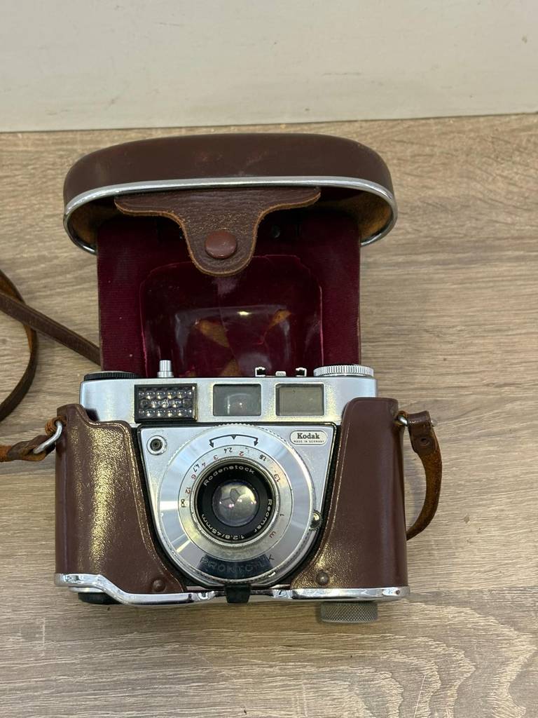 Cámara de la famosa y reconocida marca de fotografías Kodak en color marrón. Se trata de una cámara vintage para realizar fotografías en carrete. Incorpora también una funda protectora de plástico duro que la protege en todo tipo de situaciones. Es una cámara vintage, ideal para quien quiera iniciarse en la fotografía clásica o para colección. Como podemos observar en las fotografías se encuentra en buenas condiciones.