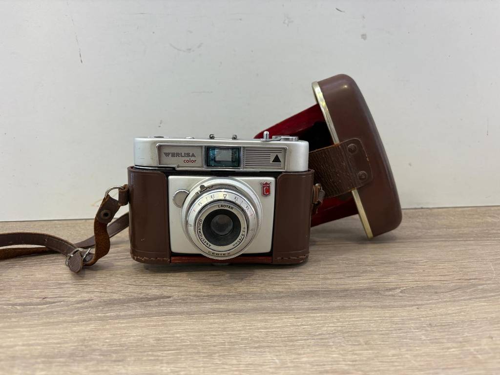 Cámara de marca de fotografías Werlisa. Se trata de una cámara vintage para realizar fotografías en carrete. Incorpora también una funda protectora de color marrón robusta y dura que la protege en todo tipo de situaciones. Es una cámara vintage, ideal para quien quiera iniciarse en la fotografía clásica o para colección. Como podemos observar en las fotografías se encuentra en buenas condiciones.