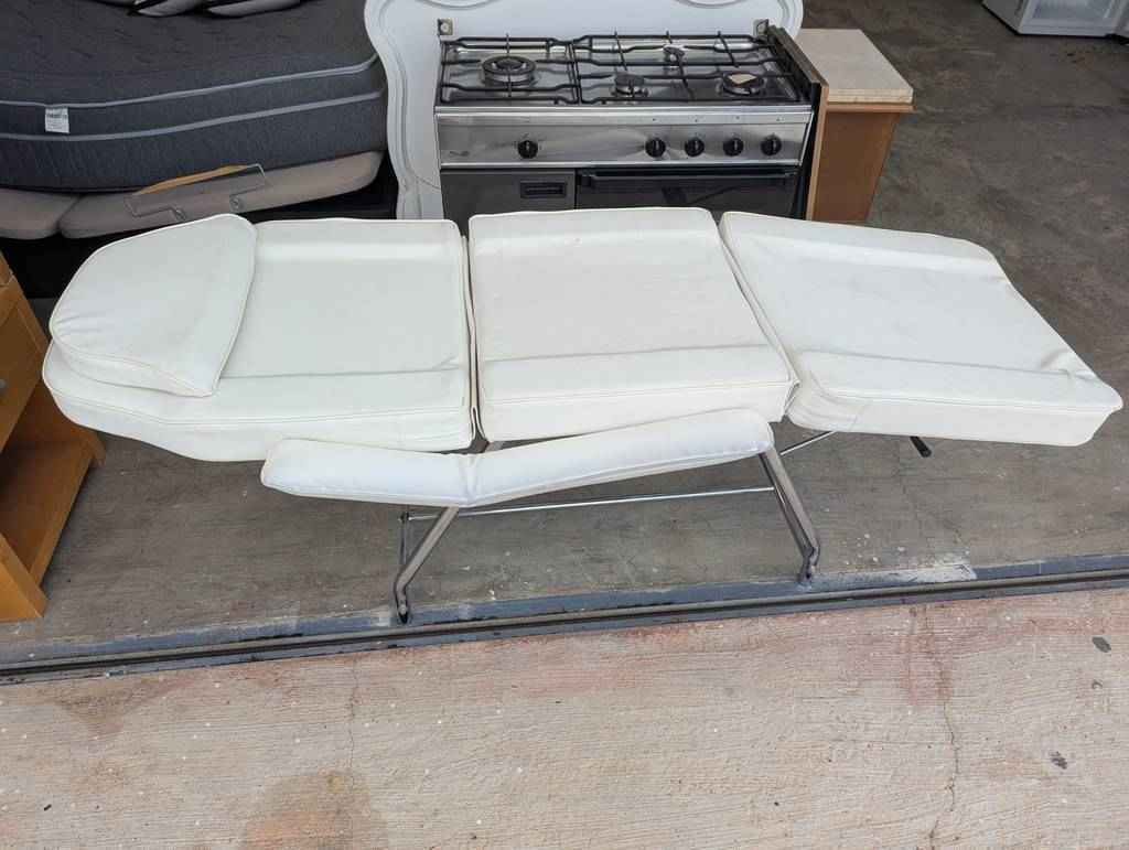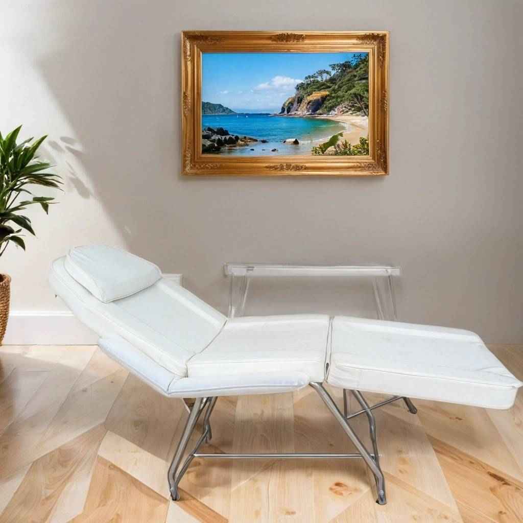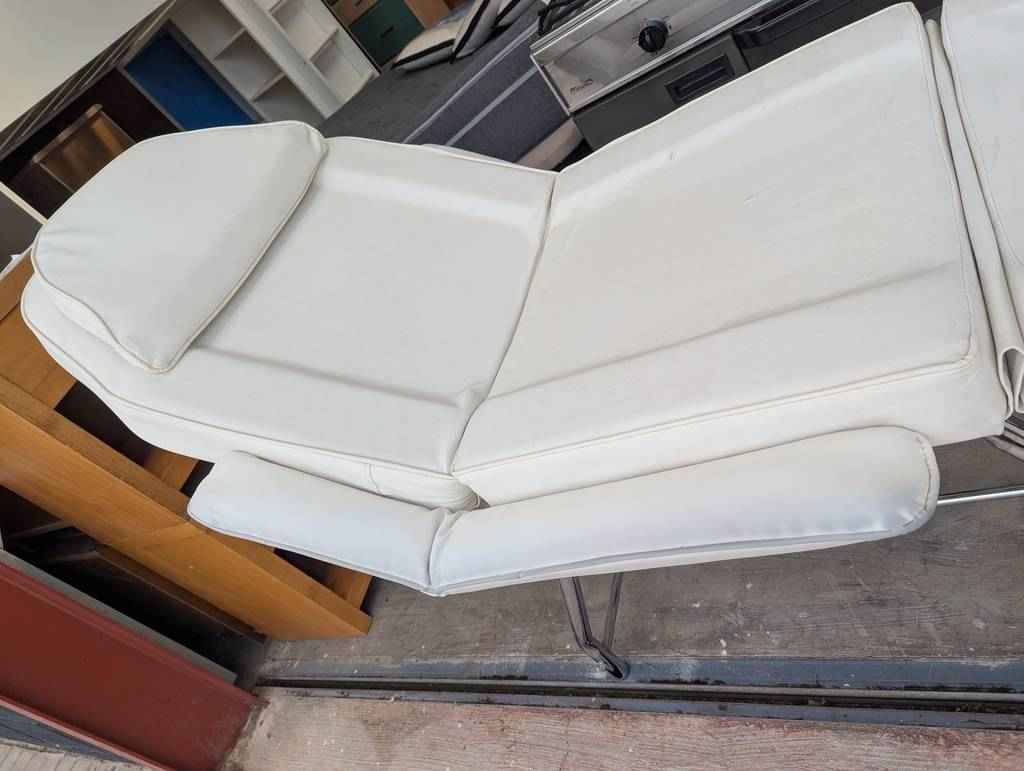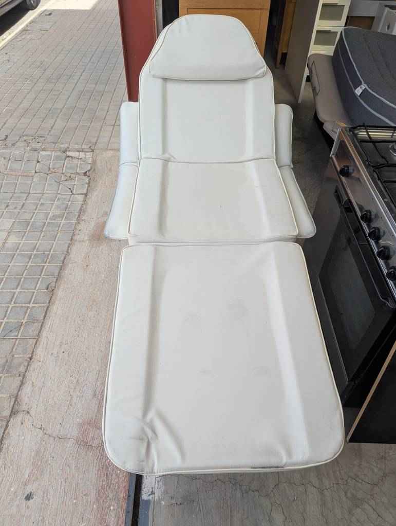 Camilla de tratamiento de color blanco. Se trata de una camilla profesional de exploración y tratamiento que cuenta con cuatro patas metálicas resistentes y tiene una estructura que se estira completamente pero también se puede doblar con facilidad. Es una camilla perfecta para utilizarla si te dedicas a dar masajes o algo relacionado con el cuidado corporal. Como se puede observar en las fotografías se encuentra en buenas condiciones.