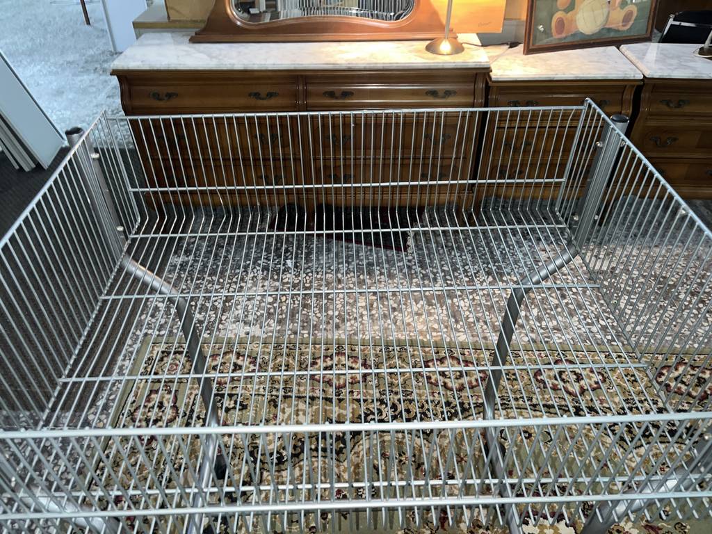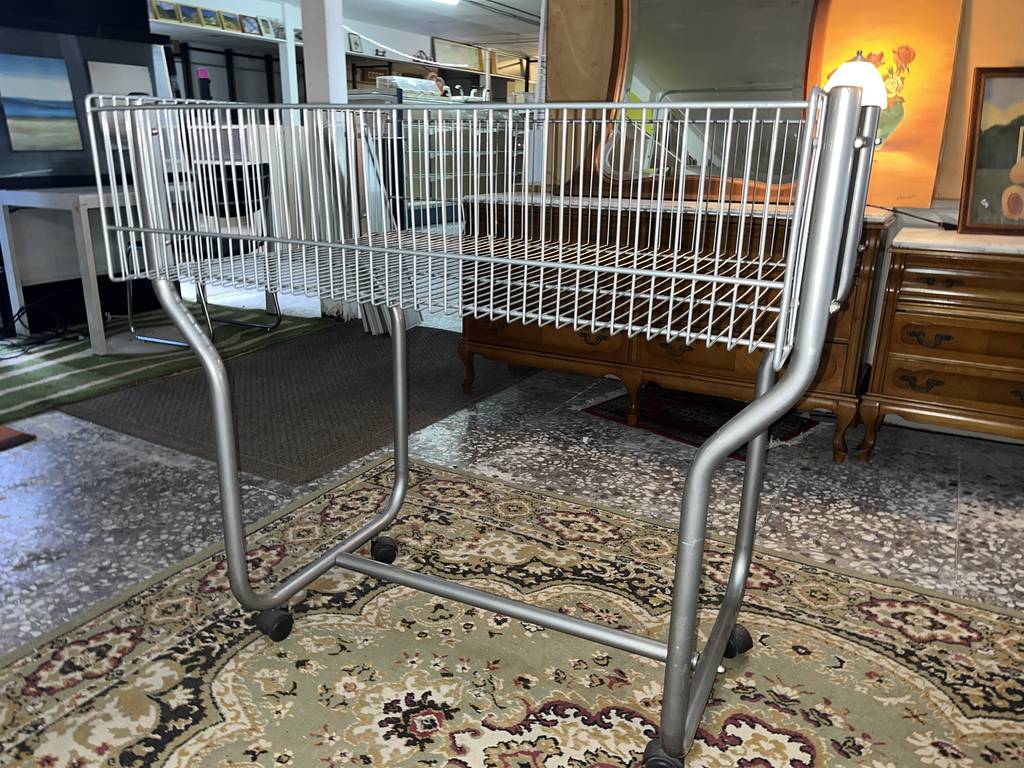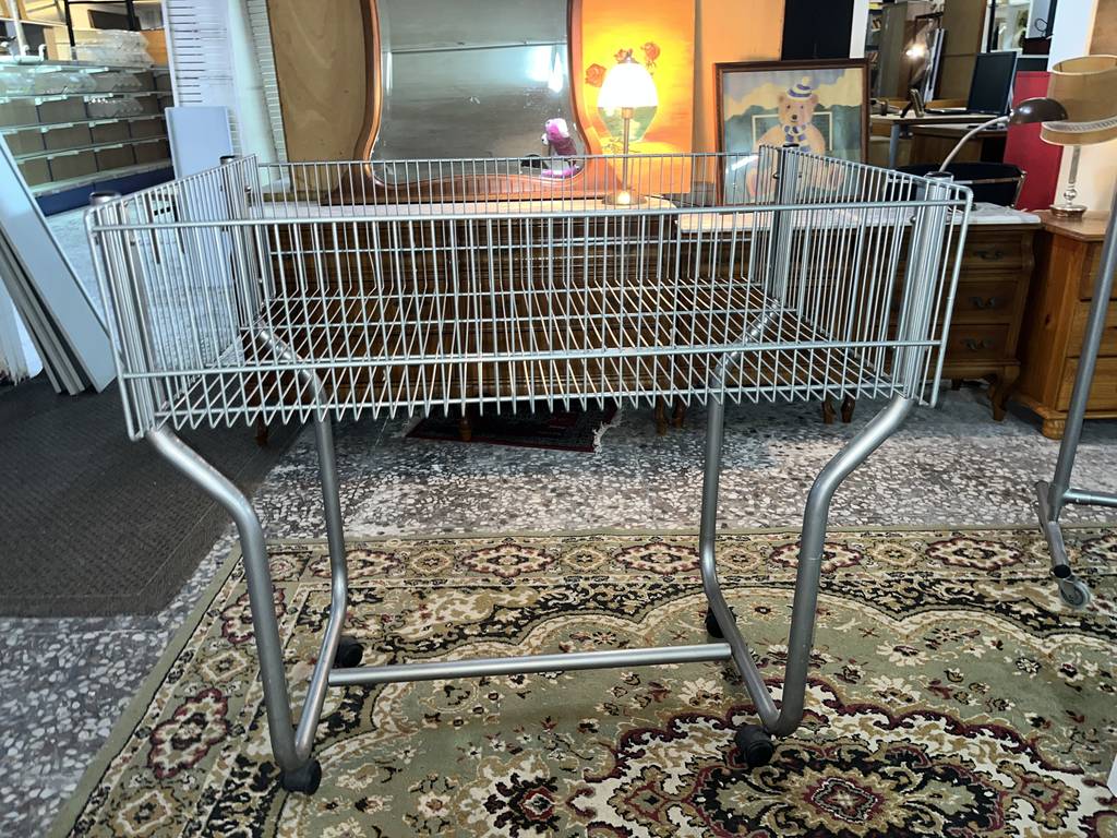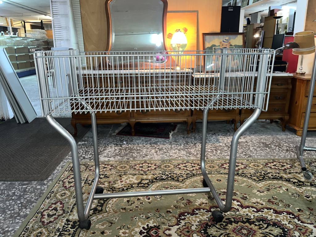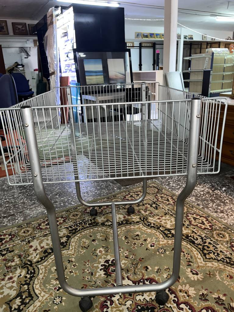 Carro de almacenaje con una estructura de metal de buena calidad y duradero. Se trata de un carro ideal para negocios o comercios que quieran colocar de manera bien ordenada para los clientes todo tipo de productos. También incorpora cuatro ruedas para moverlo fácilmente. Como podemos observar en las fotografías se encuentra en buenas condiciones.