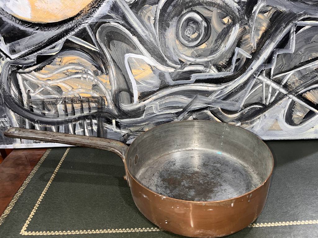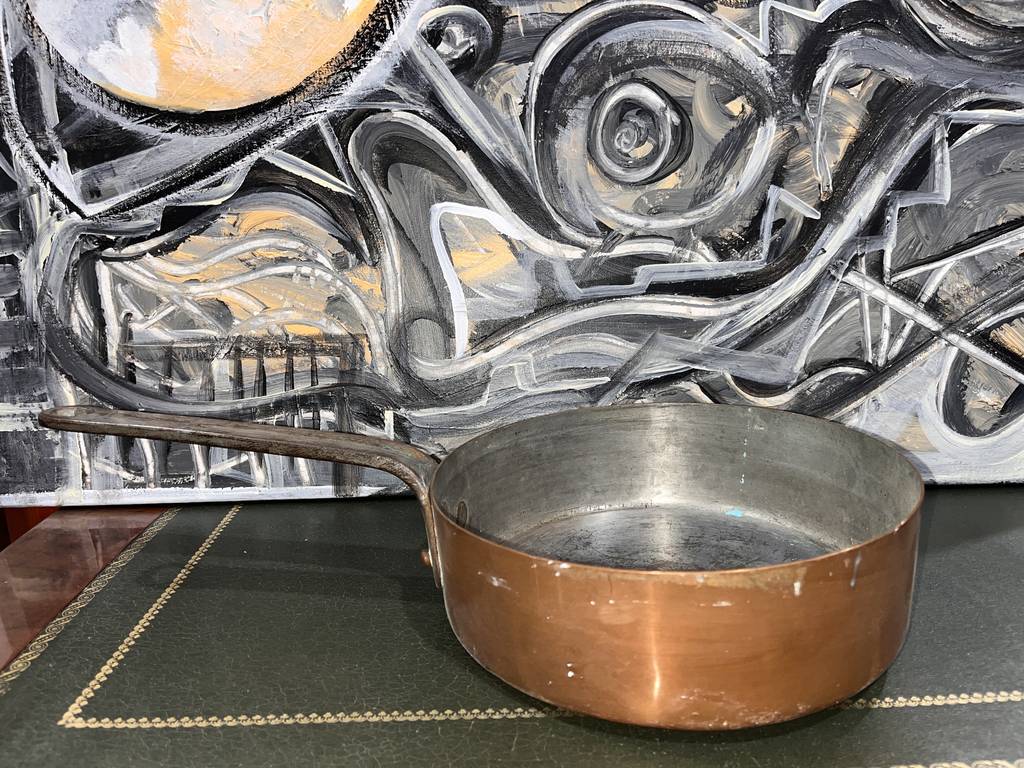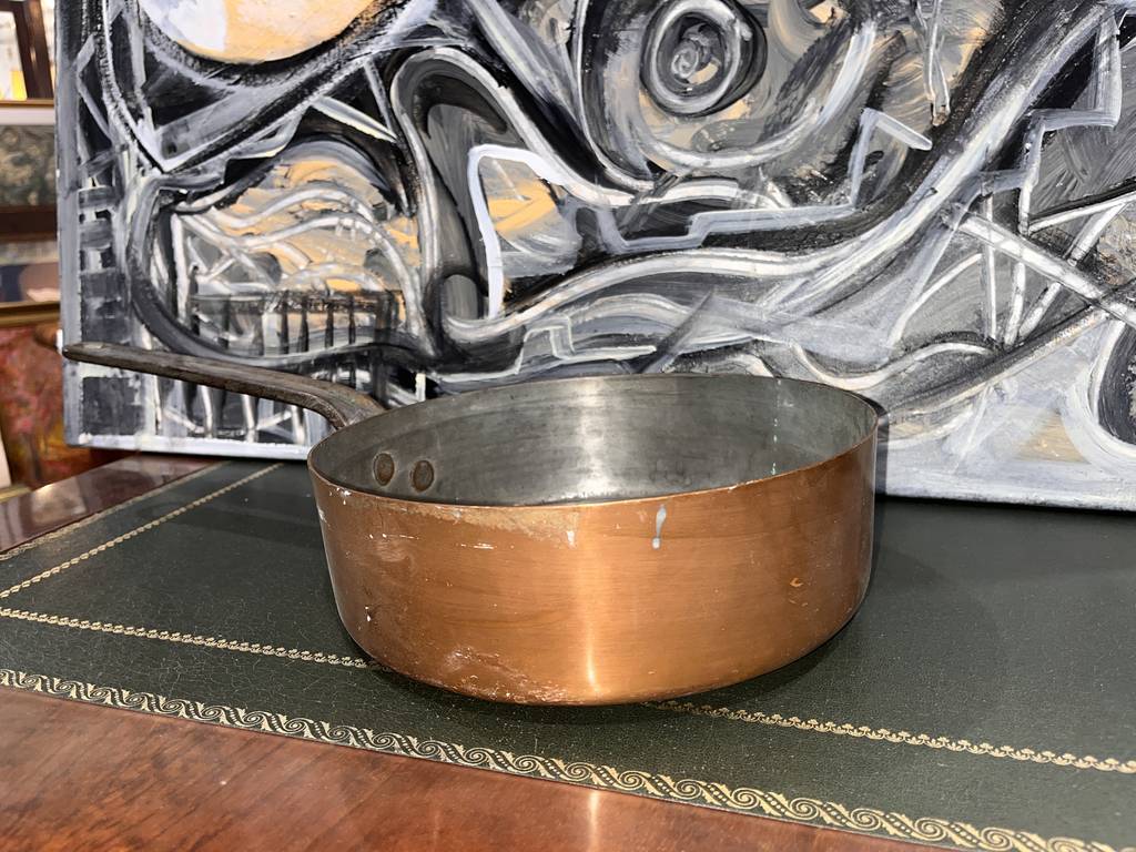 Cazo fabricado en cobre de buena calidad de tamaño mediano. Se trata de un cazo de cobre que cuenta con un mango largo para poder cogerlo y manipularlo con mayor facilidad. Es un cazo ideal para tenerlo en la cocina del hogar para hervir agua o cocinar cualquier cosa en el día a día. Como se puede observar en las fotografías se encuentra algo desgastado por el uso.