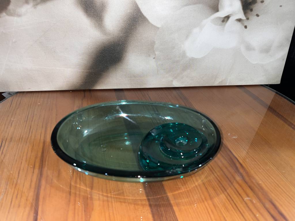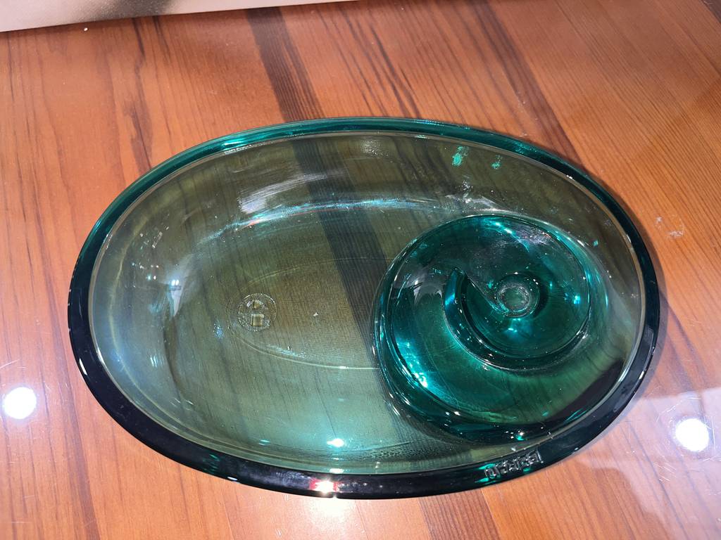 Cenicero muy bonito diseñado por el autor Joaquín Berao realizado en cristal grueso y duradero. Tiene un diseño vintage muy original. El cristal está tallado con una gran precisión y se encuentra bien cuidado como se puede ver en las fotografías. Es una pieza ideal tanto para usarlo de cenicero, como también para la decoración vintage del hogar.