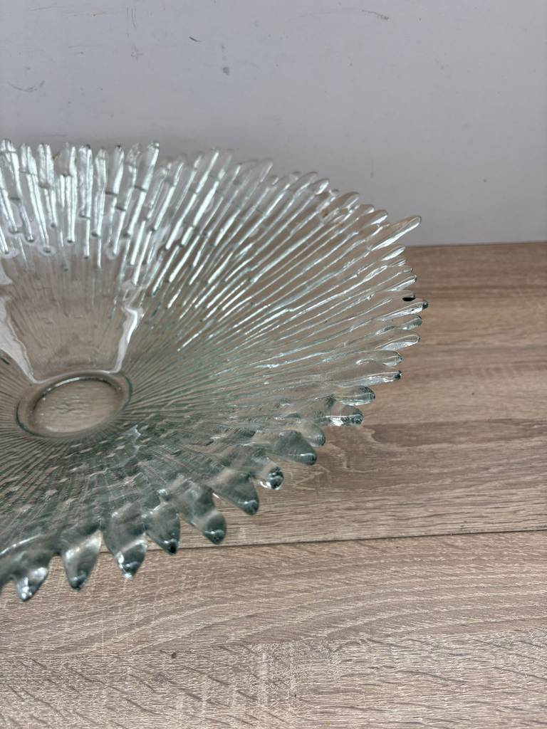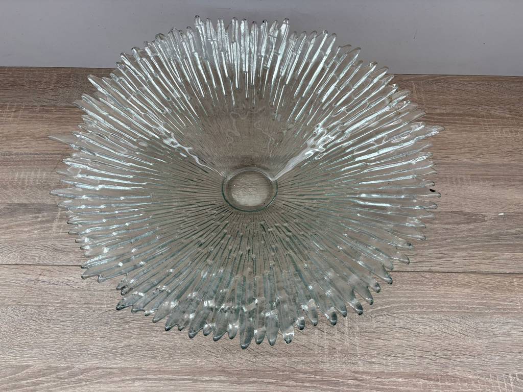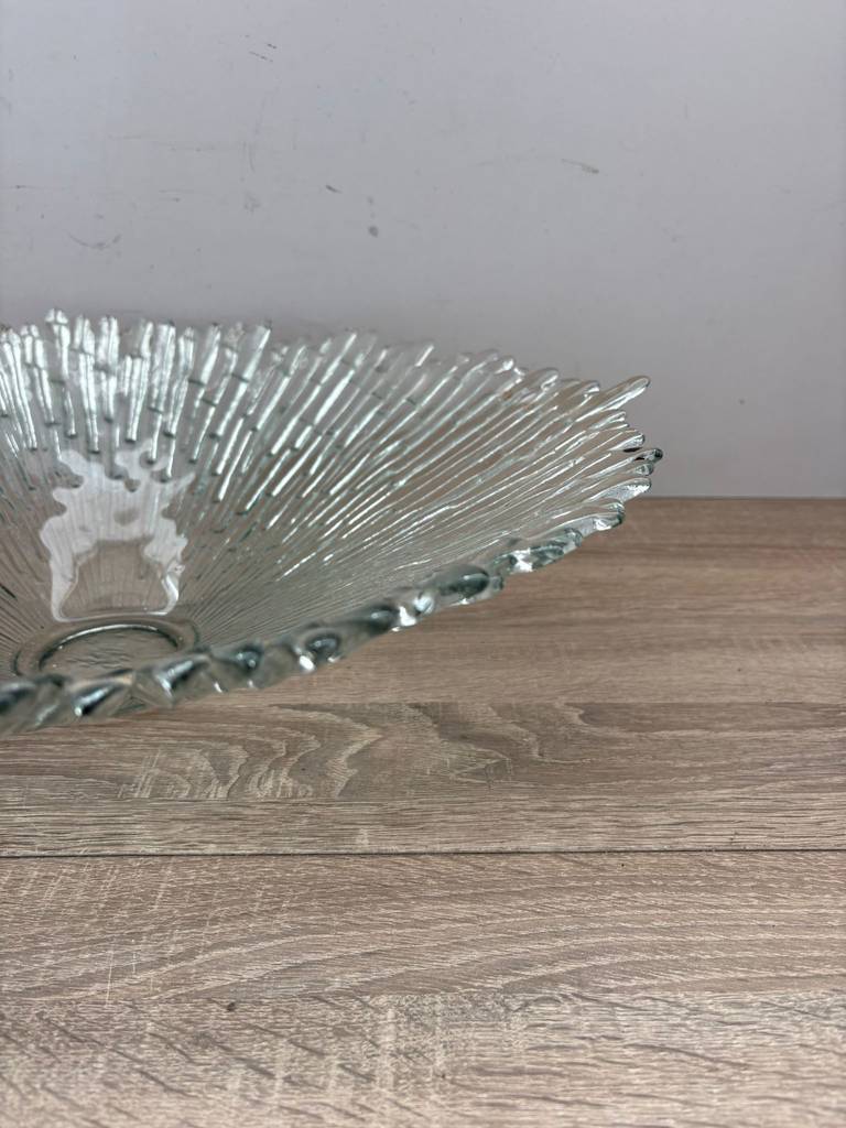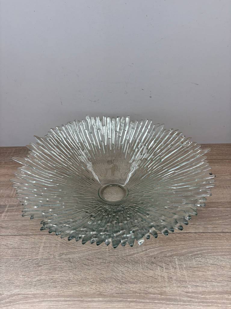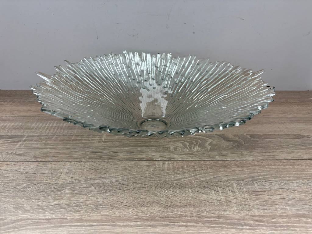 Centro muy bonito y elegante realizado con cristal grueso de buena calidad. Se trata de un centro con buen peso para que no se caiga. Tiene una forma ideal para colocar en su interior frutas o bombones, por ejemplo. Es ideal para colocar en un salón comedor como un centro de mesa. Como podemos observar en las fotografías se encuentra en buenas condiciones.