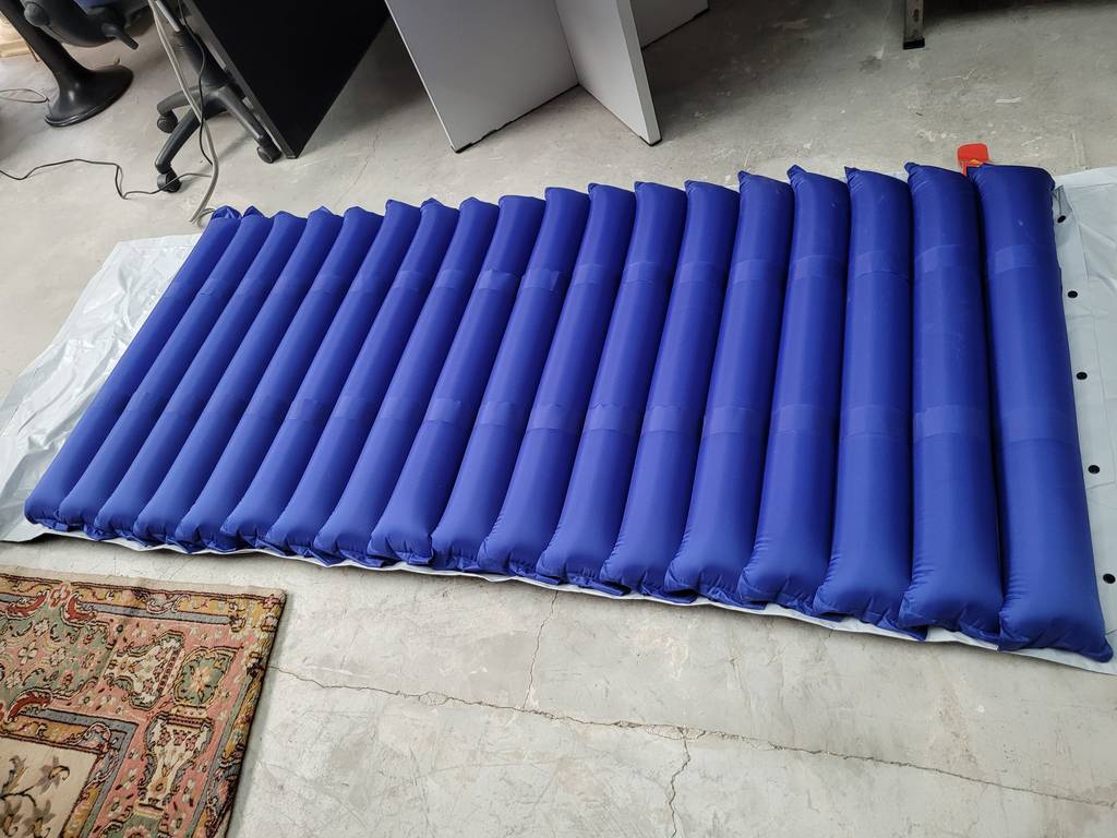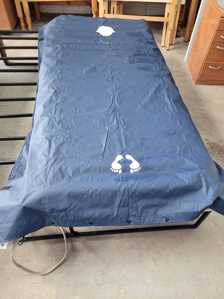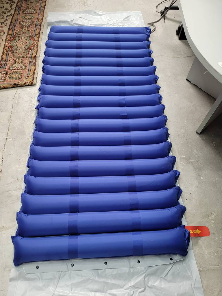 Colchón antiescaras de color azul marino. Se trata de un colchón antiescaras diseñado específicamente para ser utilizado por aquellas personas que padecen problemas circulatorios y permanecen encamadas para evitar llagas o la formación de escaras. Es un colchón ideal para tenerlo en el hogar de personas que lo necesiten. Como se puede observar en las fotografías se encuentra en buenas condiciones.