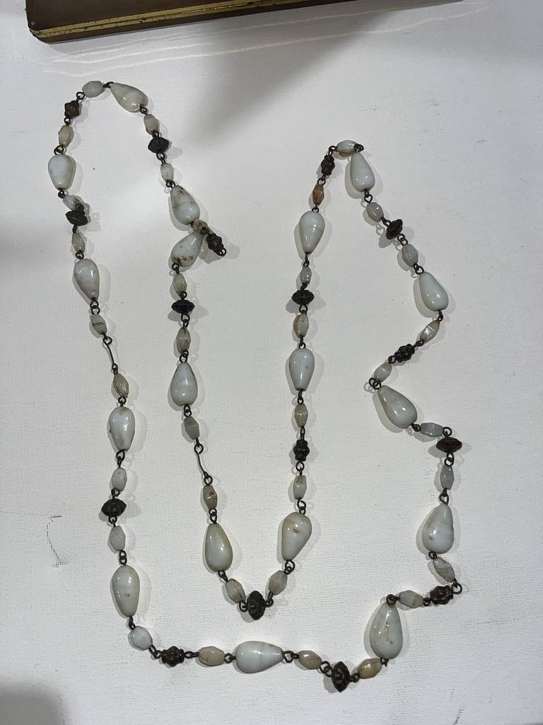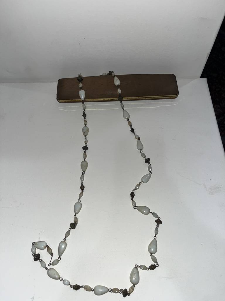 Collar de piedras de estilo vintage o antiguo muy bonito y original compuesto por pequeñas piedras preciosas unidas por pequeños eslabones. Es un collar ideal para regalar o para llevarlo como complemento. Como podemos observar en las fotografías se encuentra en buenas condiciones. Aprovecha esta oportunidad de conseguir una bonita pieza a un módico precio.