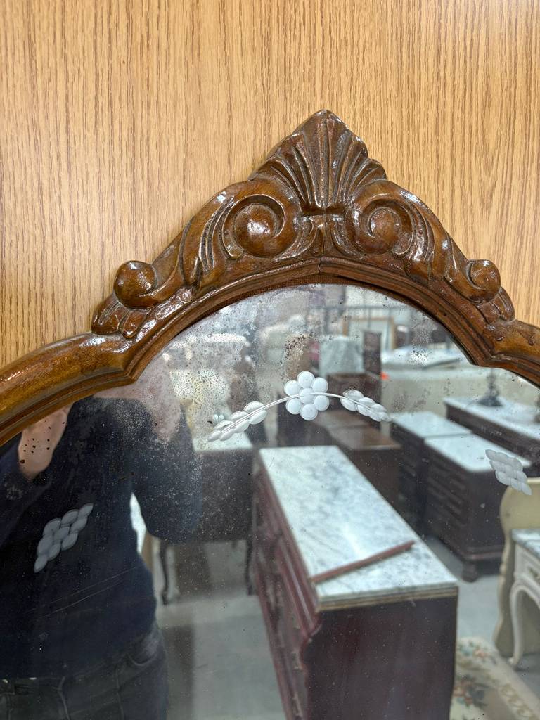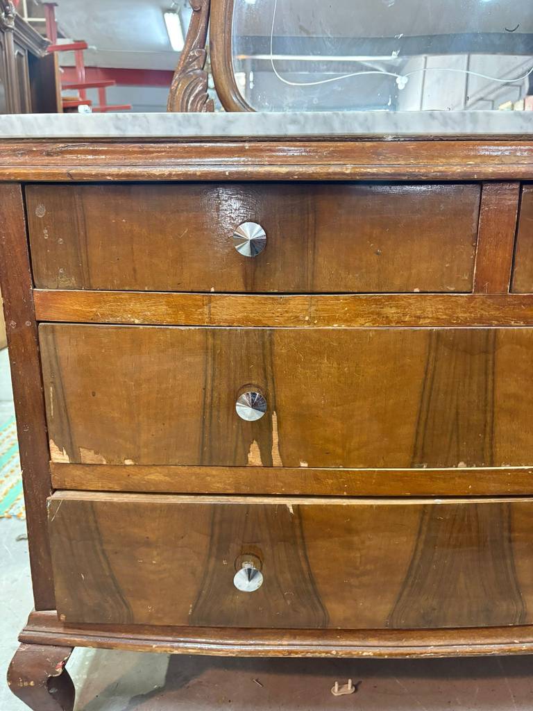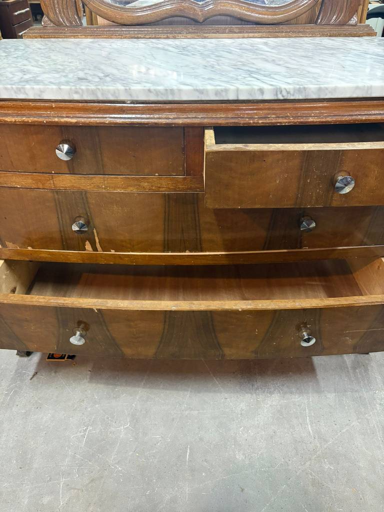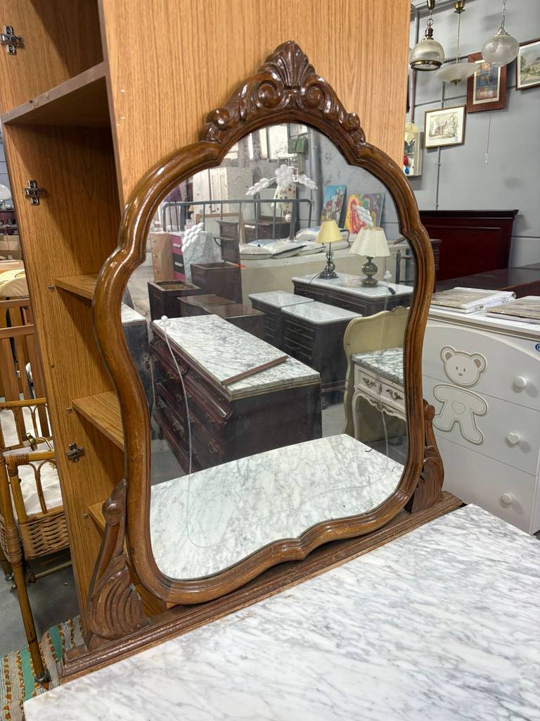 Cómoda con espejo de estilo clásico o vintage fabricada en madera de buena calidad de color marrón oscuro. Se trata de una cómoda que cuenta con cuatro cajones, dos más grandes y dos más pequeños. En la parte superior dispone de un espejo amplio y es una cómoda perfecta para ponerla en un dormitorio. Como se puede observar en las fotografías se encuentra en buenas condiciones.