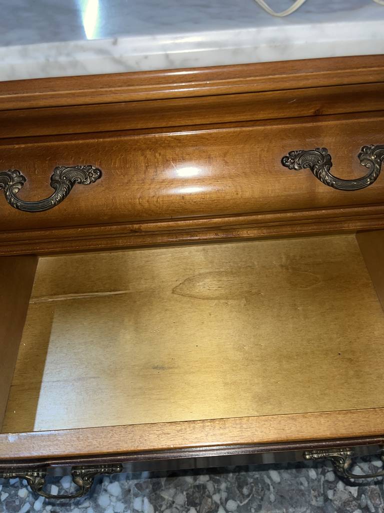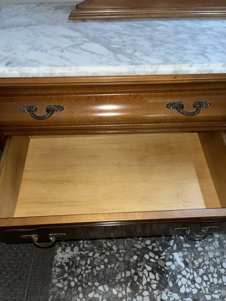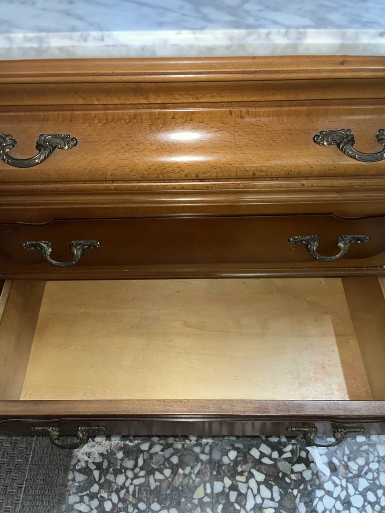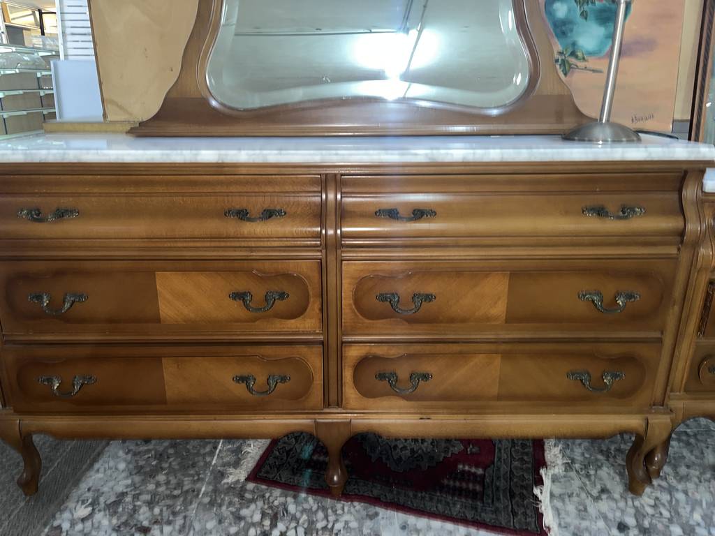 Conjunto de dormitorio de estilo clásico compuesto por una cómoda con espejo y dos mesitas. Todo el conjunto ha sido fabricado con madera de buena calidad y robusta. Tanto la cómoda como las mesitas incorporan cajones amplios ideales para almacenar todo tipo de enseres. Aprovecha esta oportunidad de amueblar tu dormitorio dándole un estilo clásico y elegante.