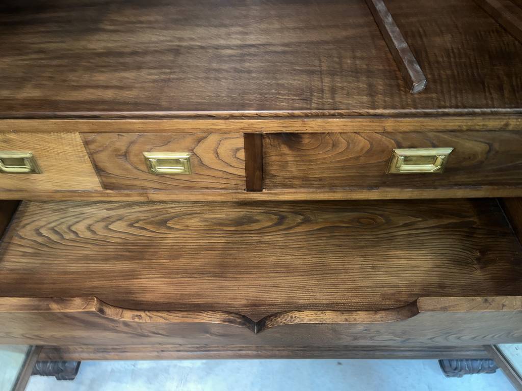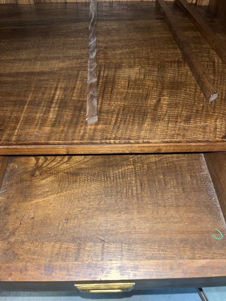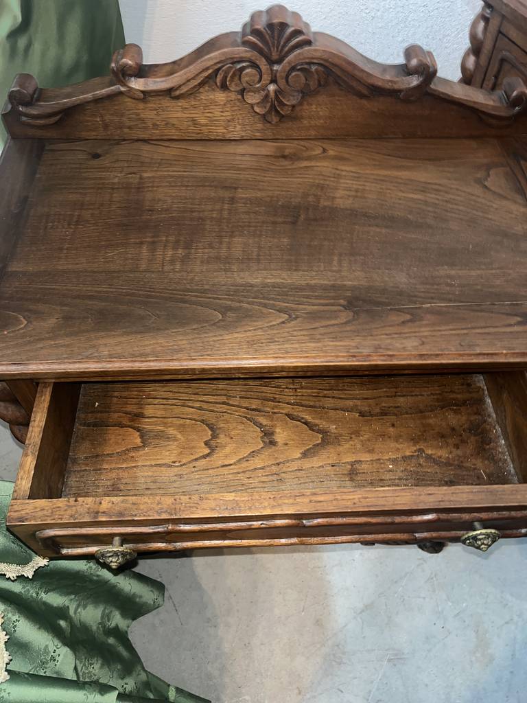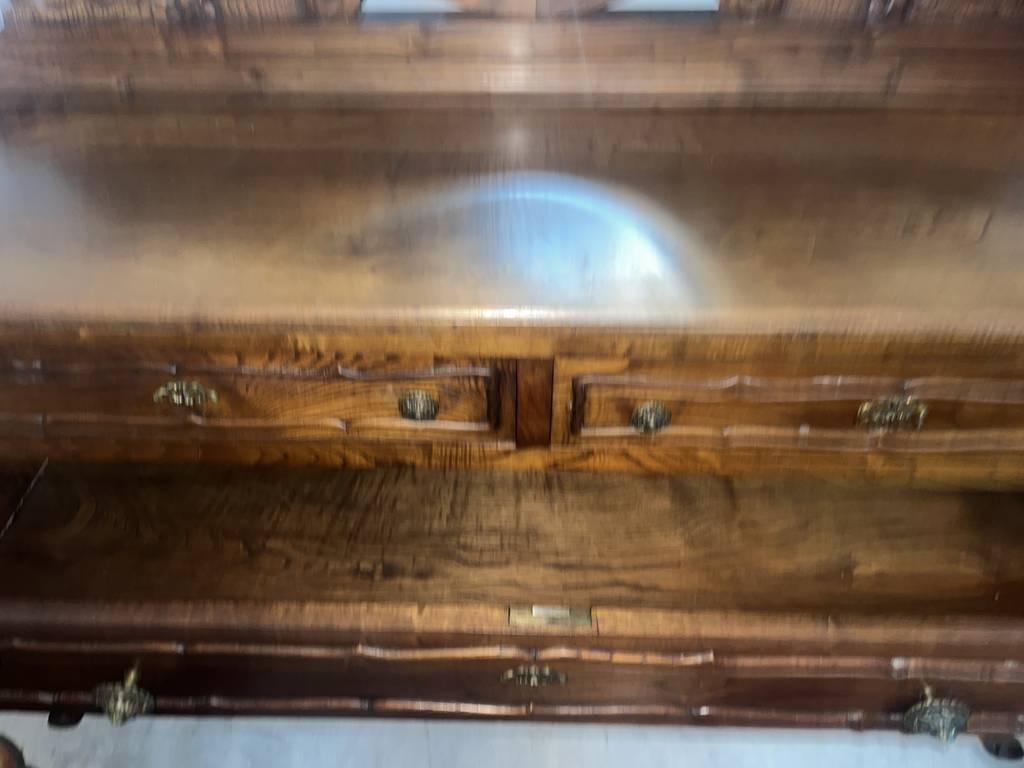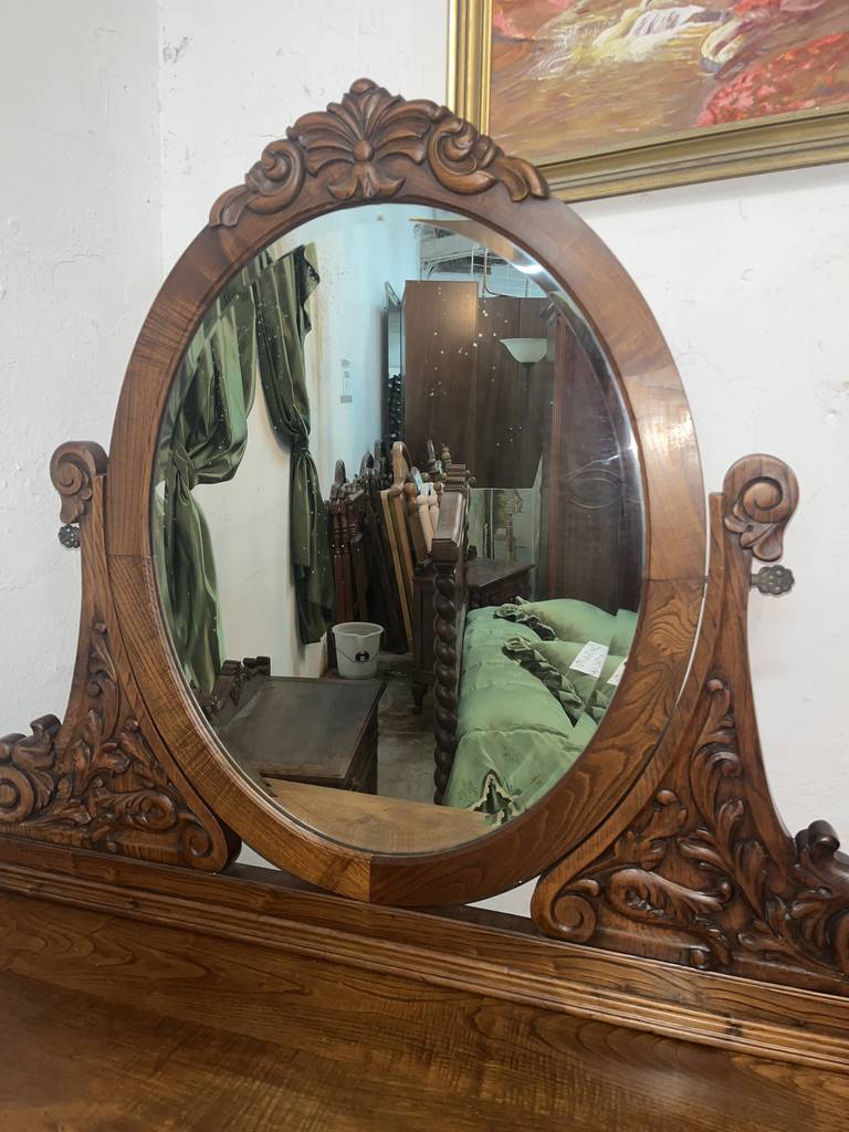Conjunto de habitación formado por un armario, dos mesitas de noche, una cama y una cómoda con espejo, todo ello fabricado en madera de buena calidad de color marrón oscuro. Se trata de un conjunto de habitación completo que resulta ideal para amueblar todo un dormitorio de matrimonio con un estilo clásico. Como se puede observar en las fotografías se encuentra en buenas condiciones.