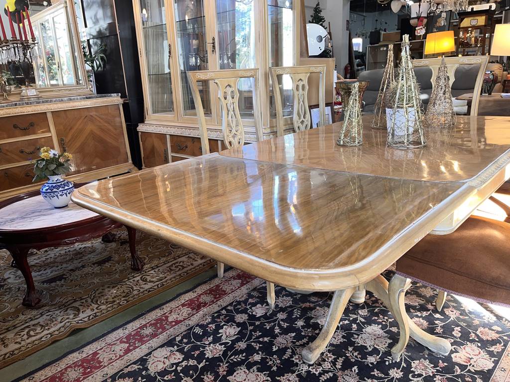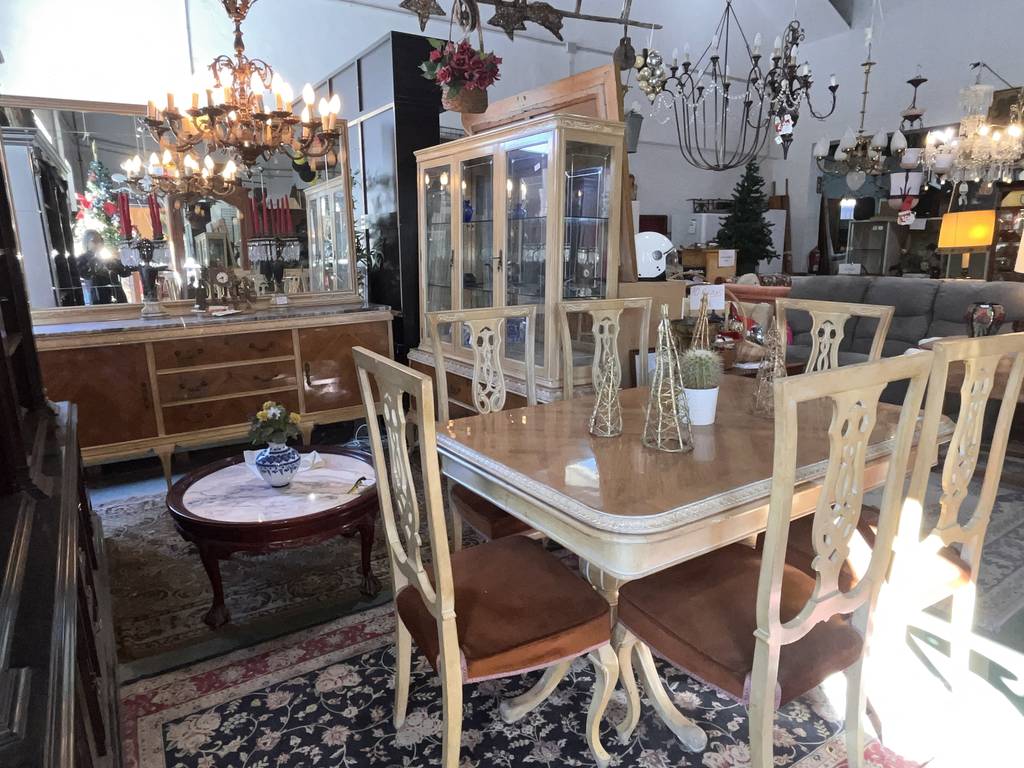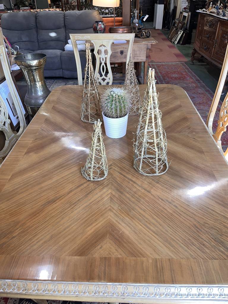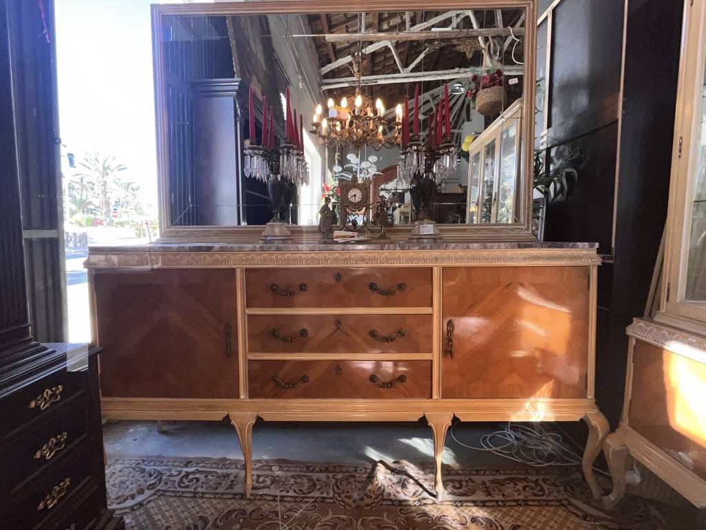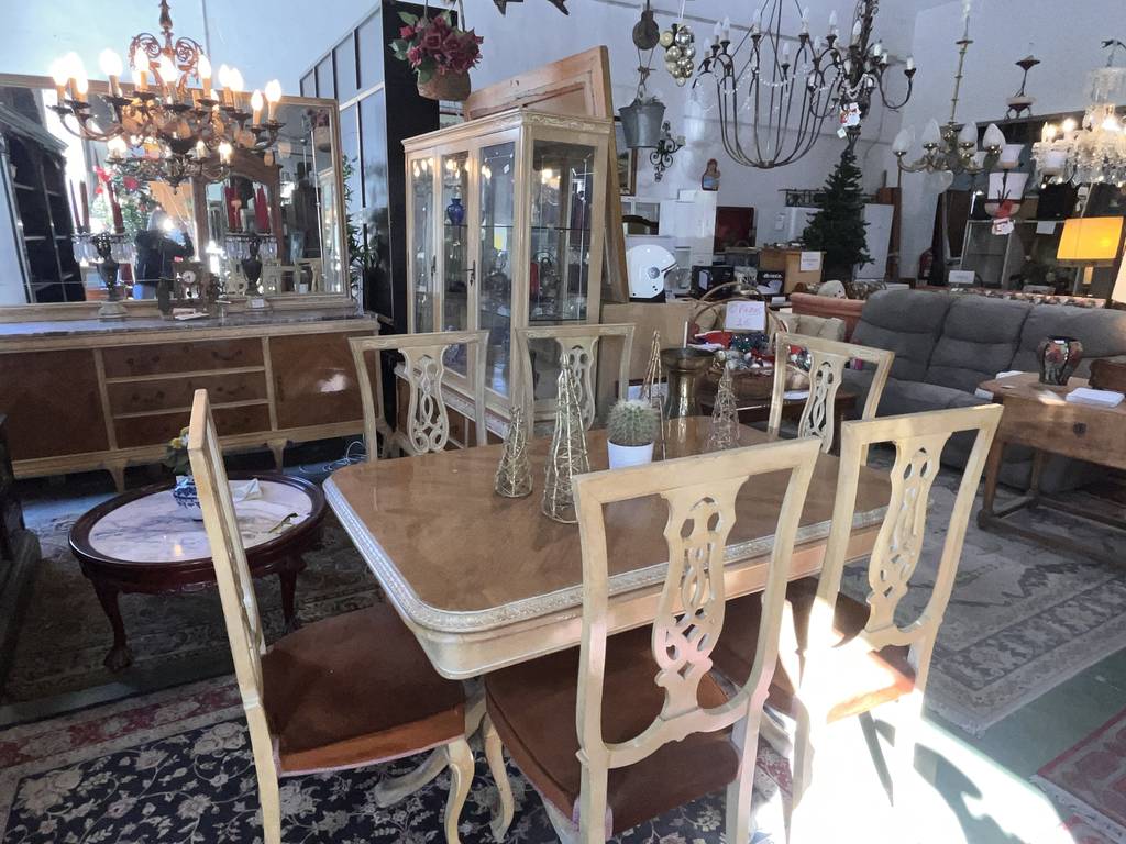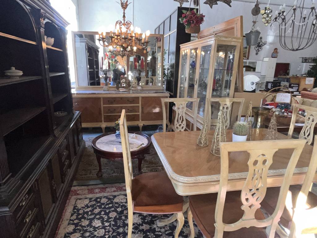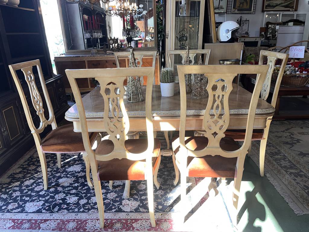 📐 Medidas Mesa (ancho x fondo): 100×150/270x80cm. Sillas 50x45x100cm. Vitrina 147x50x186cm. Aparador 200x55x97cm. Espejo 190x115cm.