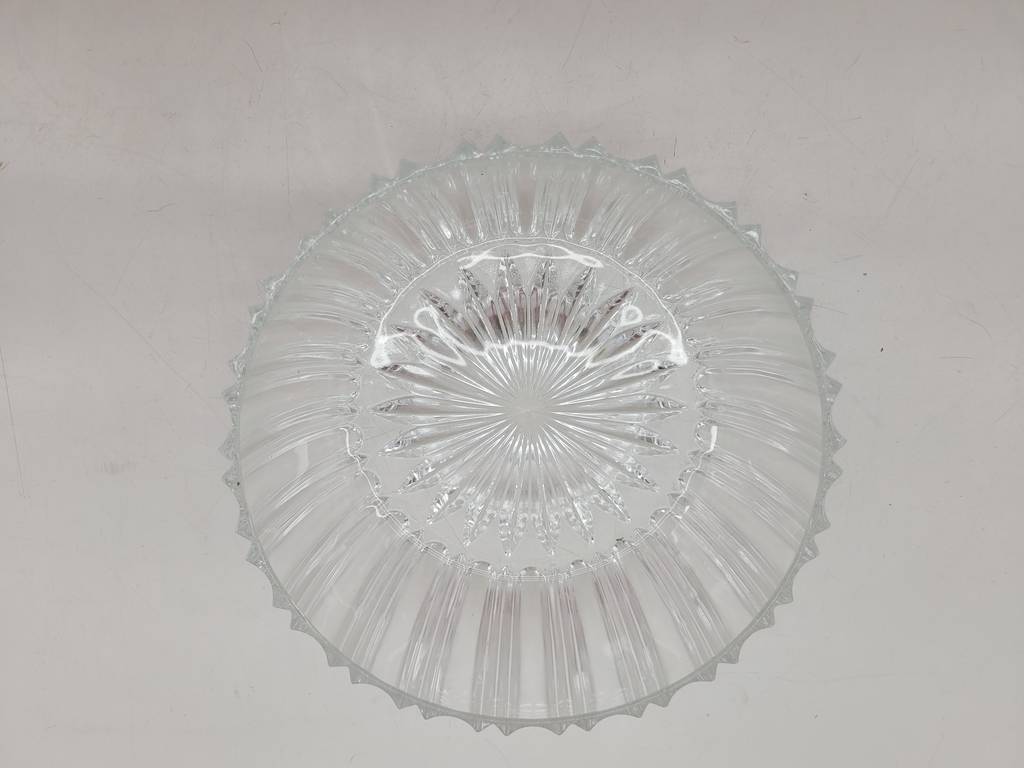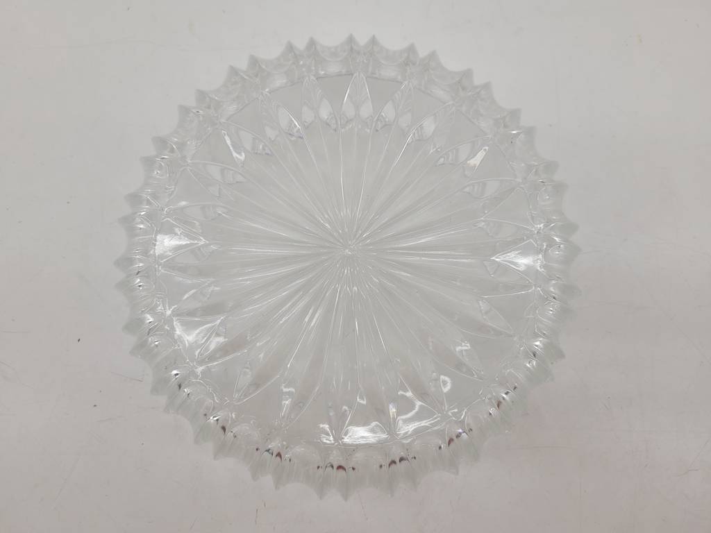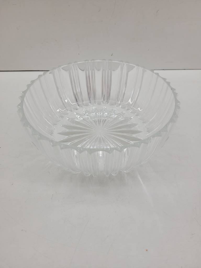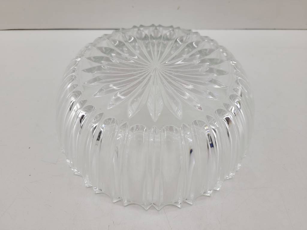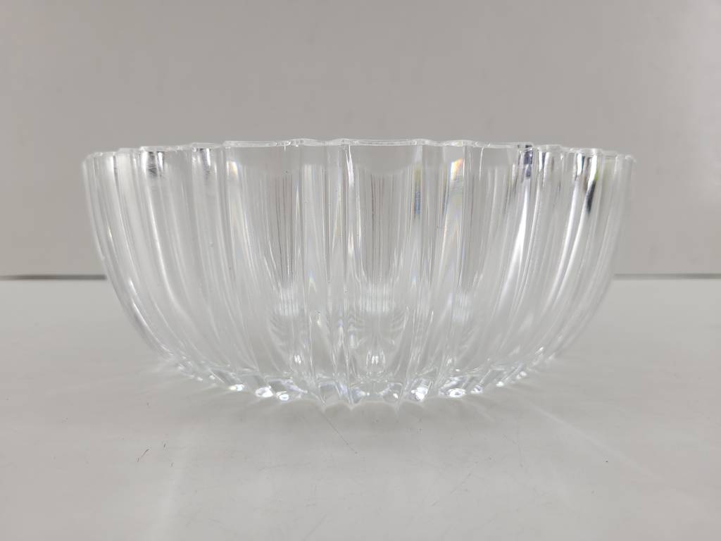 Cuenco de cristal tallado de buena calidad y transparente de tamaño pequeño. Se trata de un cuenco de cristal grueso tallado que tiene unas rayas en relieve por toda su superficie. Es un cuenco multiusos ya que se puede utilizar para poner popurrí oloroso encima o para servir unas galletas o bombones a las visitas. Como se puede observar en las fotografías se encuentra en buenas condiciones.