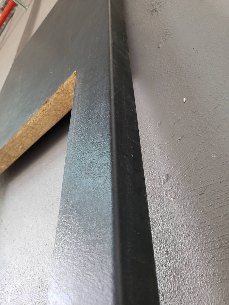 Encimera larga fabricada en madera de buena calidad de color negro. Se trata de una encimera que cuenta con dos huecos centrales donde aparece la madera recortada en forma de dos cuadrados de gran tamaño. Es una encimera ideal para ponerla en una cocina de estilo moderno y actual. Como se puede observar en las fotografías se encuentra en buenas condiciones.