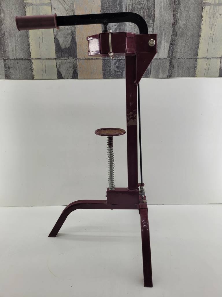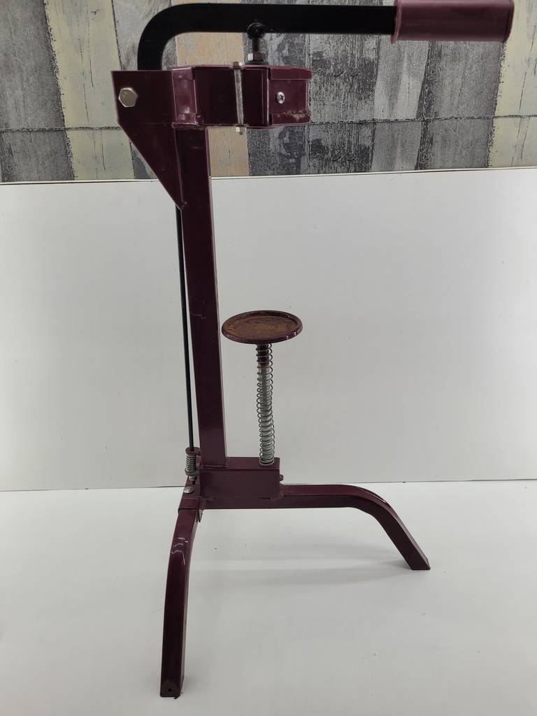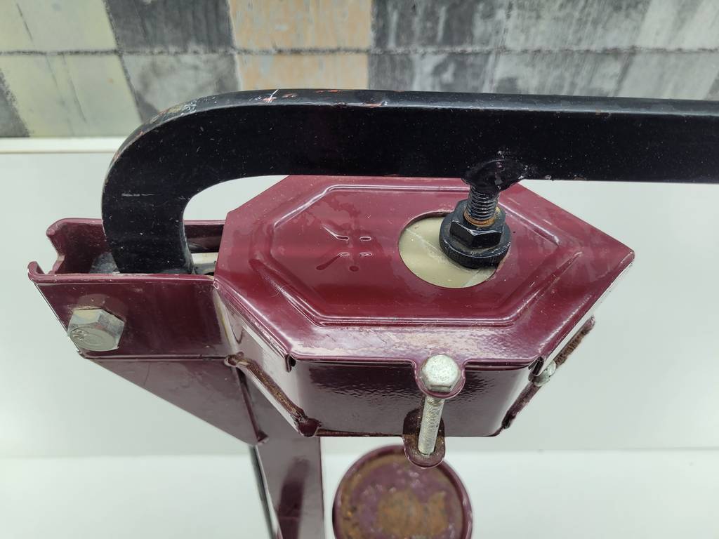 Encorchadora fabricada en metal de color granate. Se trata de una práctica y clásica encorchadora que sirve para ponerle un corcho a las botellas para poder taparlas mejor. Es un objeto ideal para coleccionistas de objetos clásicos o para gente que necesite encorchar botellas en su hogar. Como se puede observar en las fotografías se encuentra en buenas condiciones.