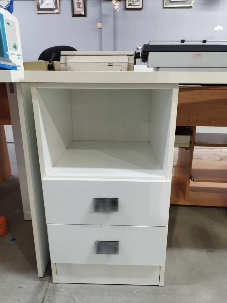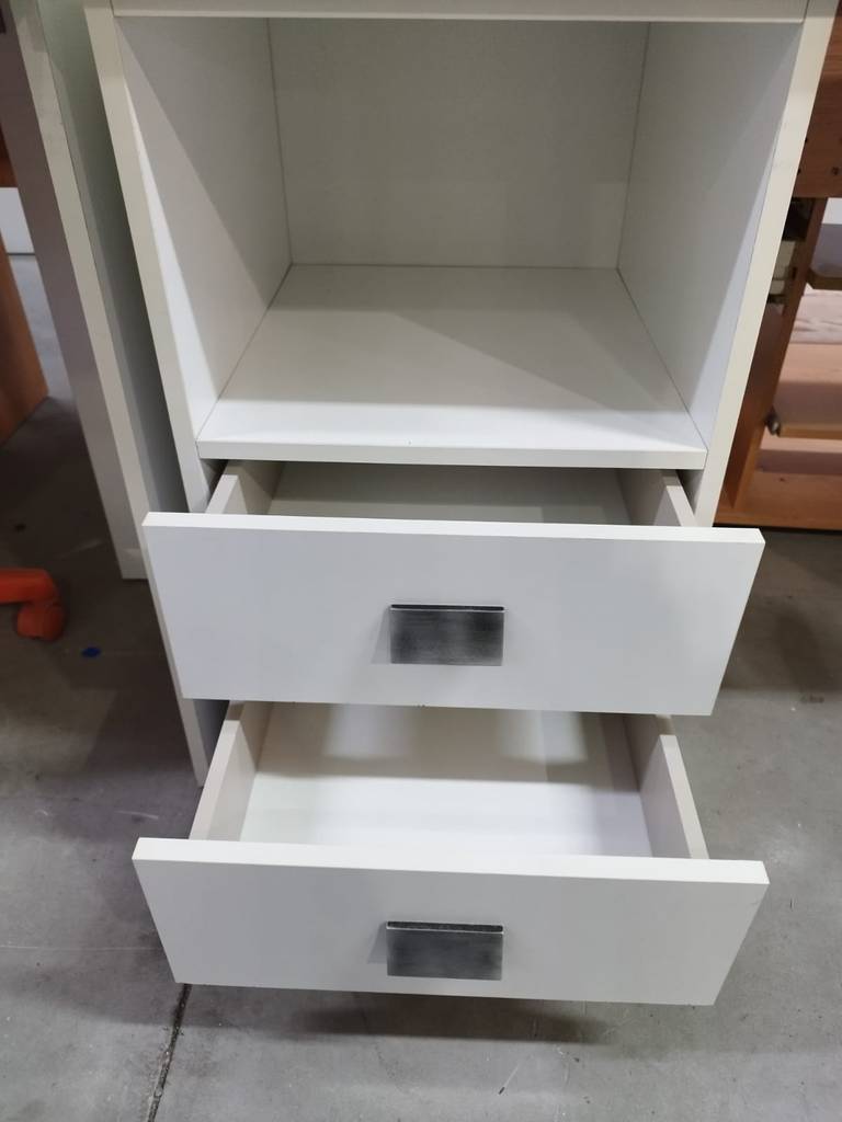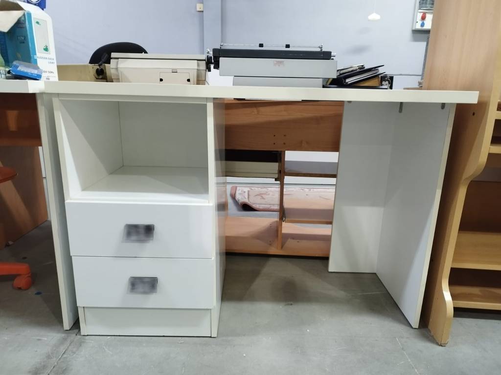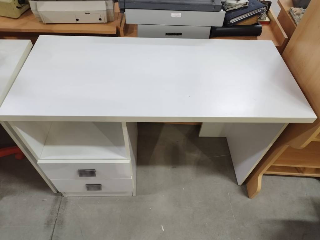 Escritorio de estilo moderno y de color blanco que ha sido fabricado con madera de buena calidad y robusta. Se compone de un tablón rectangular superior ideal para realizar todo tipo de trabajos o estudios. También incorpora en un lateral un habitáculo abierto y dos cajones. Es ideal para colocar en un dormitorio juvenil o estudio. Como podemos observar en las fotografías se encuentra en buenas condiciones, aunque presenta un ligero rasguño.