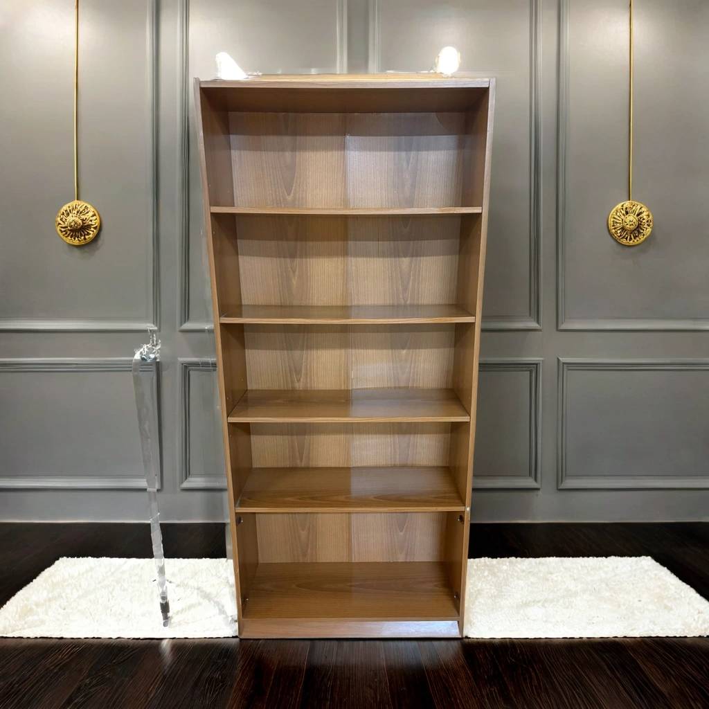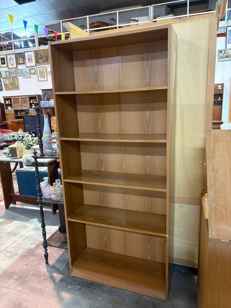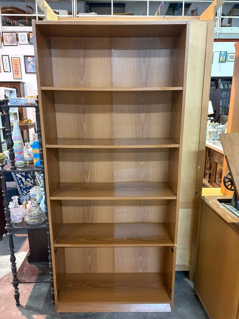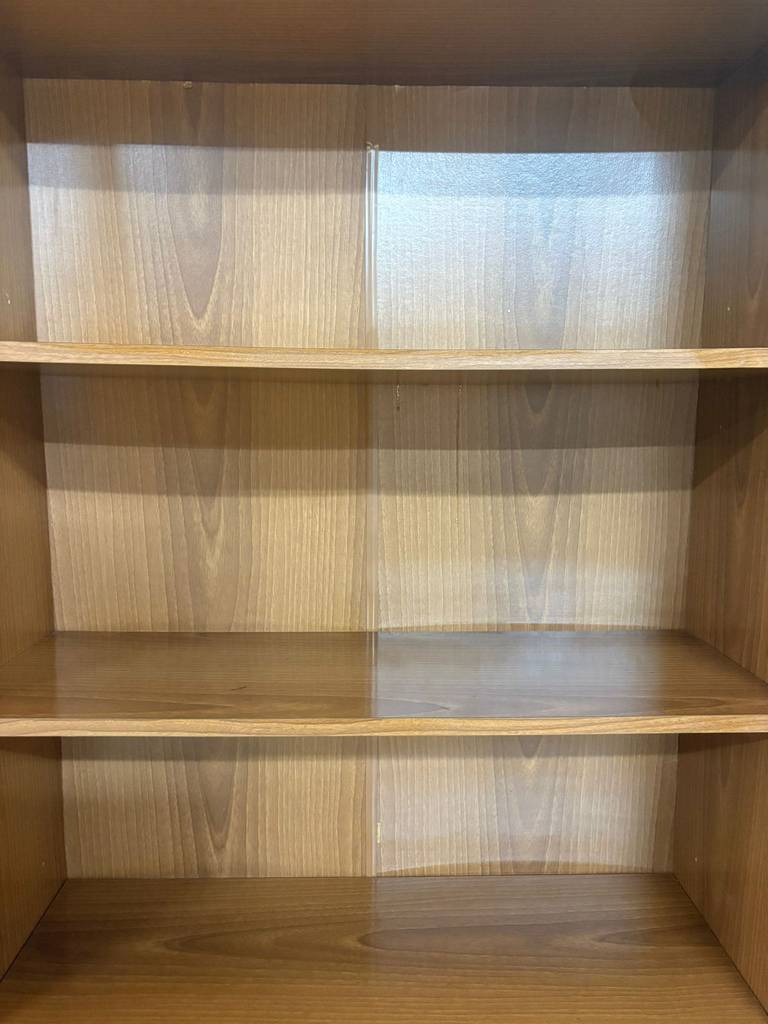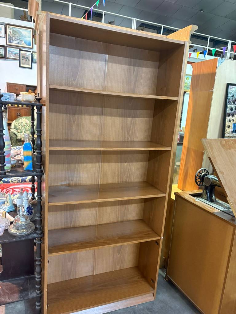 Estantería alta fabricada en madera de buena calidad de color marrón claro. Se trata de una estantería alta que cuenta con cuatro baldas alargadas y tiene cinco habitáculos amplios para colocar objetos de todo tipo. Es una estantería perfecta para colocarla tanto en un salón comedor como en un dormitorio. Como se puede observar en las fotografías se encuentra en buenas condiciones.