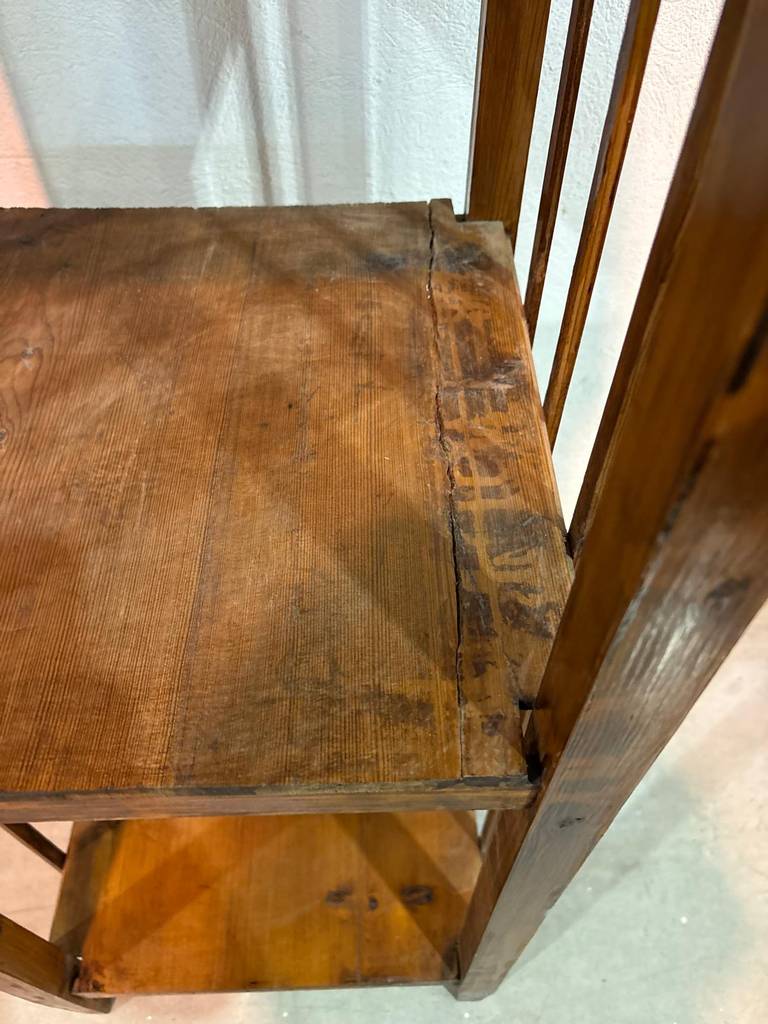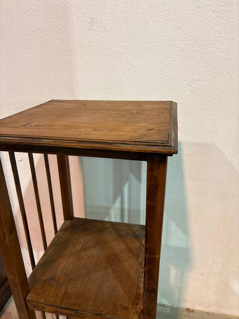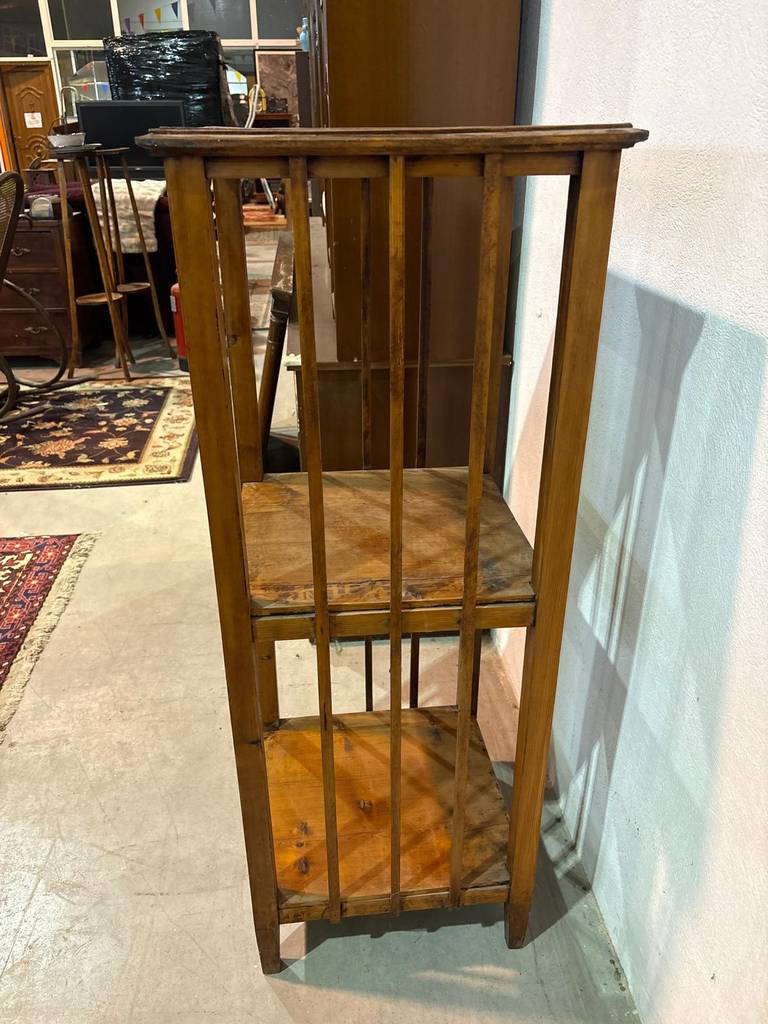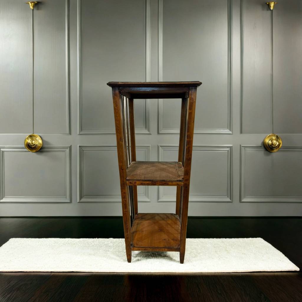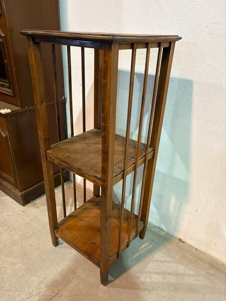 Estantería antigua de estilo clásico que ha sido fabricada con madera de buena calidad y robusta. Se compone de tres tablones de madera cuadrados ideales para colocar un jarrón, revistas, libros, entre otros. Es una estantería muy versátil que podemos colocar en un recibidor, salón comedor o estudio. Como podemos observar en las fotografías presenta desperfectos.