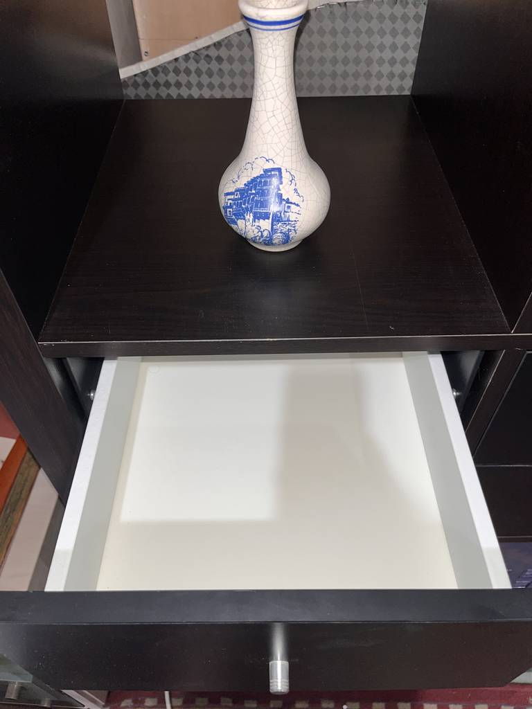 Estantería de la reconocida tienda de muebles sueca Ikea de color negro. Se trata de una estantería fabricada en madera de buena calidad modelo Kallax que cuenta con ocho habitáculos sin puertas, cuatro habitáculos con cestas de plástico cuadradas y ocho cajones estrechos. Es una estantería ideal para ponerla en un salón comedor de estilo moderno. Como se puede ver en las imágenes está en buen estado.