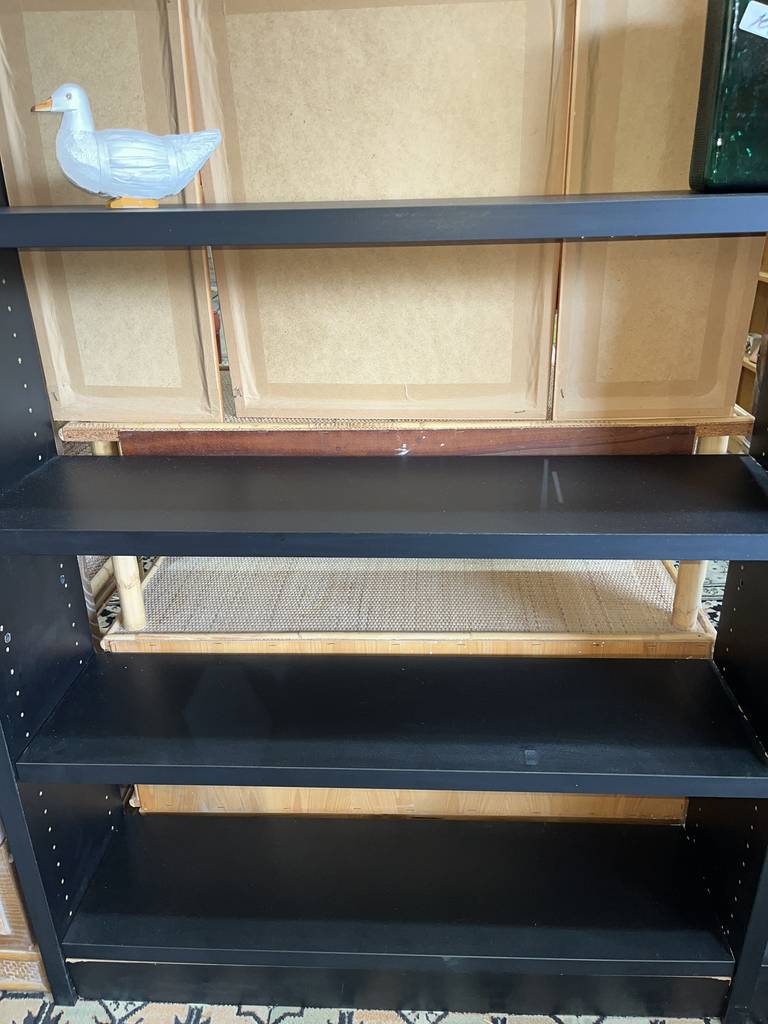 Estantería de gran tamaño fabricada en madera de buena calidad de color negro. Se trata de una estantería grande que cuenta con diez baldas y múltiples huecos para colocar figuras o libros. Es una estantería perfecta para colocarla tanto en un salón comedor como en un estudio. Como se puede observar en las fotografías se encuentra en buenas condiciones.
